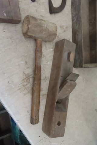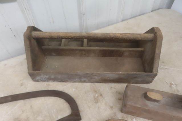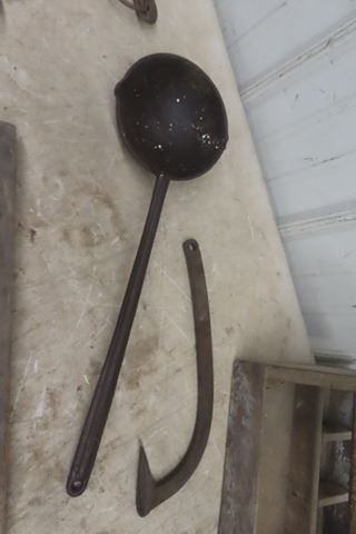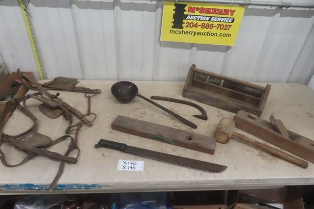 Cast Iron Ladle, Wooden Tool Box, Level, Plane, Machete, Horse Bridle