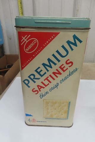 Cast Metal Credit Union Bank, Safeway Metal Pig Bank, Bottle Kiln Bank, Cracker TIn, Basket Tin + Other Tins