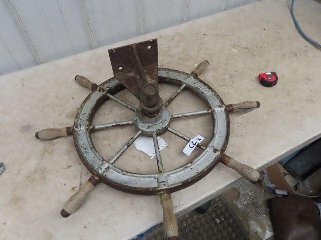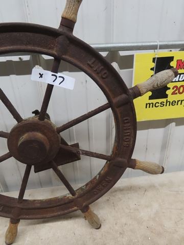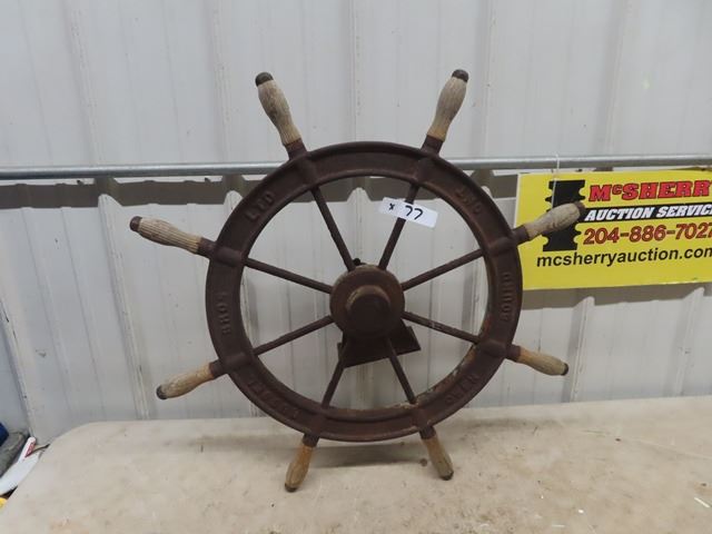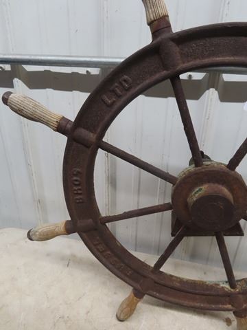 Cast & Wood Handled Ship Steering Wheel Russel Bros Ltd. 29" RD To End Handle
