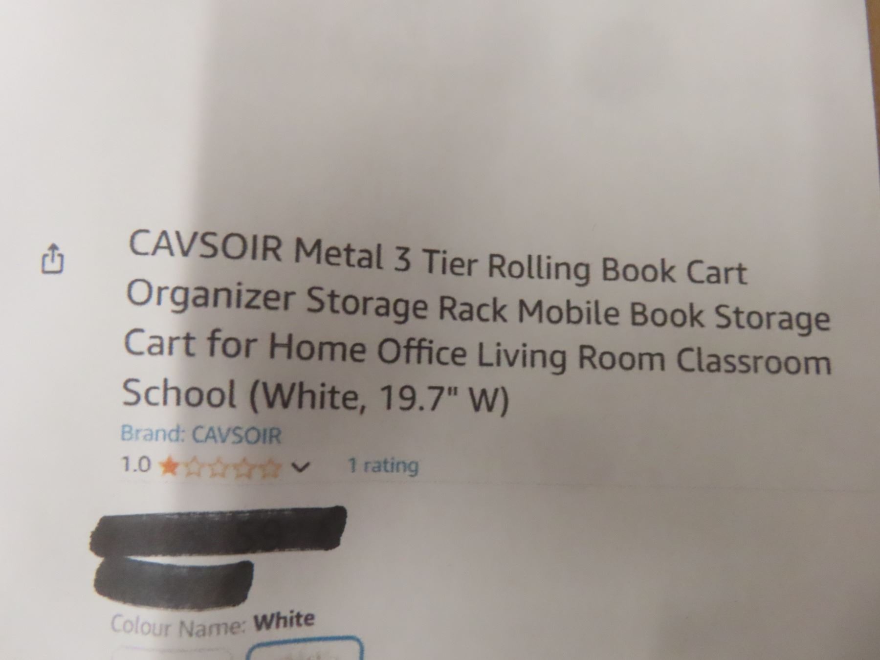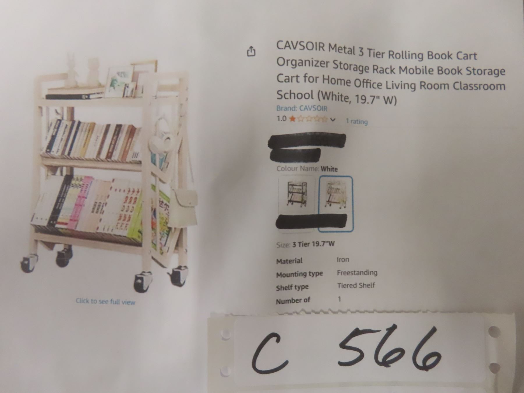 Cavsoir Metal 3 Tier Rolling Book Cart Organizer Storage Rack Mobile Book Storage Cart for Home Office Living Room Classroom School (White 19.7''W)