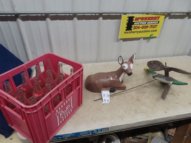 Cement Deer Ornaments, Wooden Mallard Duck Yard Ornament, Case w Pic A Pop Bottles