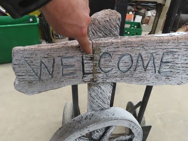 Cement Welcome/ Planter Yard Ornament 32" Tall - Last picture Shows crack