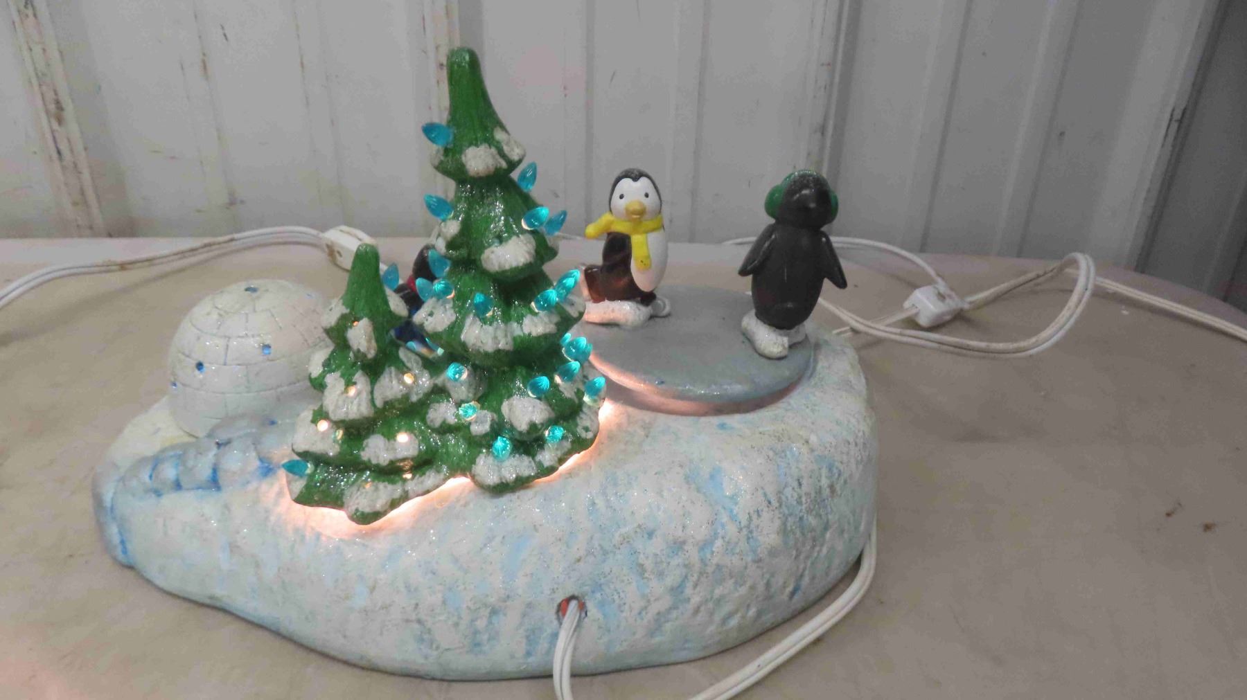 Ceramic Christmas Tree 13'' H Works , Ceramic Musical Light Up Penguin Display 12'' x 8'' x 7'' H Works