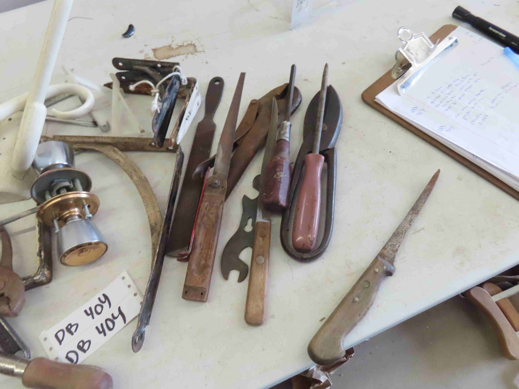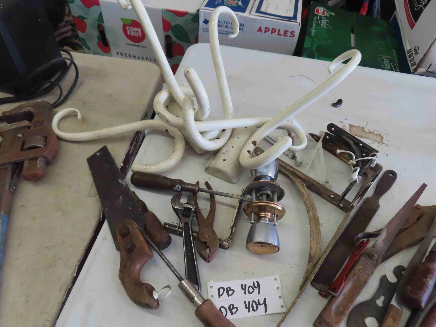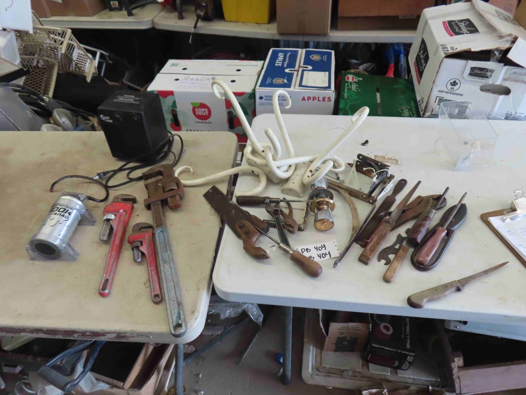 Ceramic Electric Heater, Pipe Wrench, Hooks, Shelf Brackets, Odds n Ends of Tools, Knives