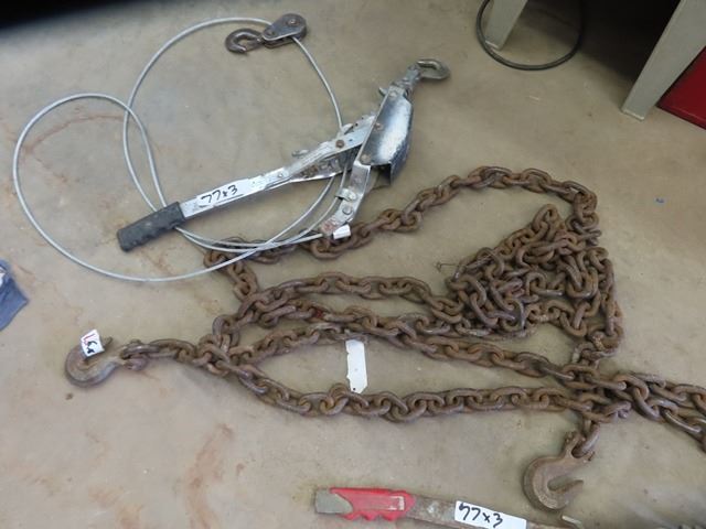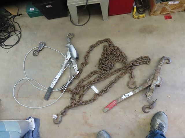 Chain Approximately 24' , 2 Hooks, 2 Come Alongs