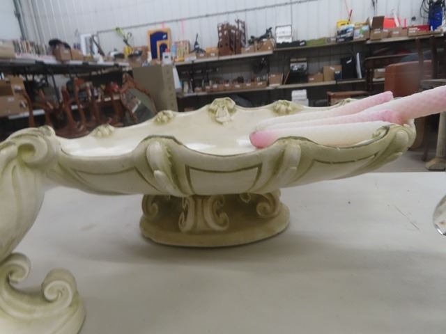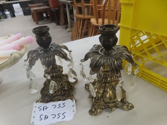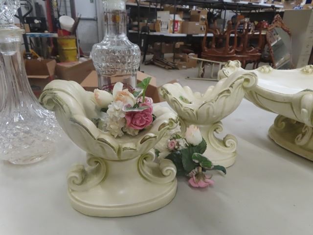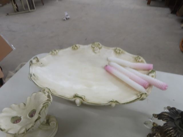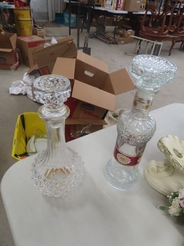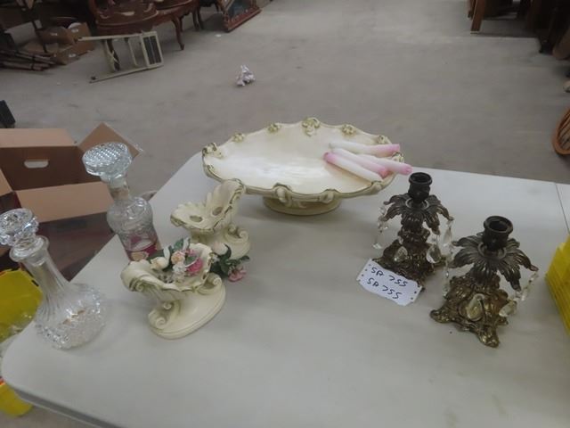 Chalkware Center Piece + Candle Holder, Vintage Candle Holder with Prisms, 2 Decanters