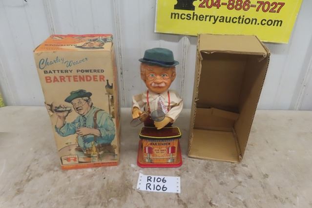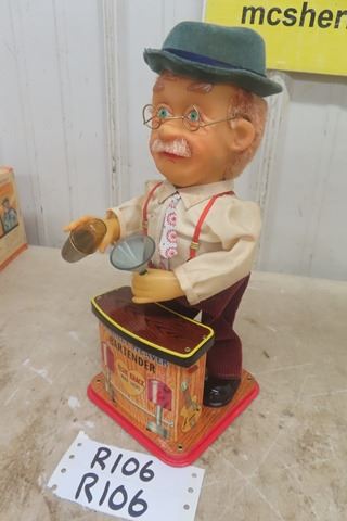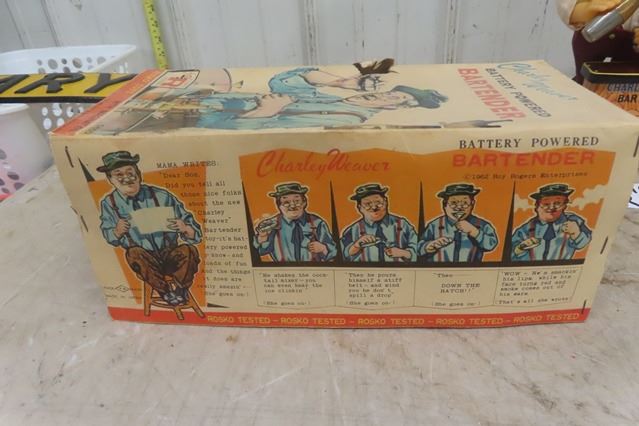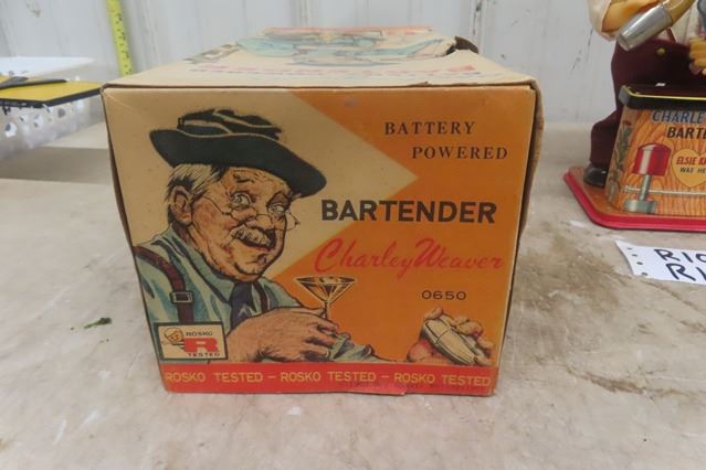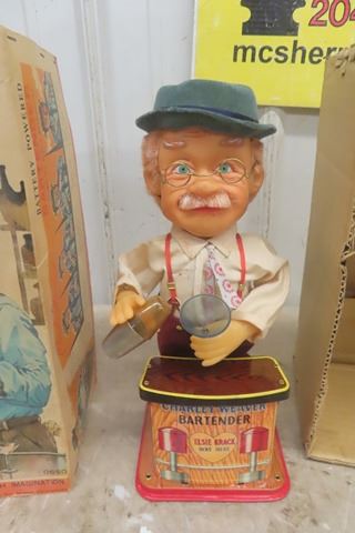 Charley Weaver Battery Powered Bartender in Original Box - Rosko Toys 12" Tall