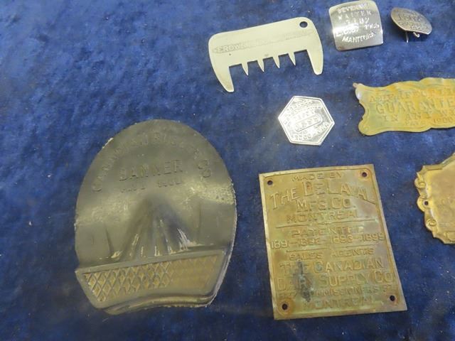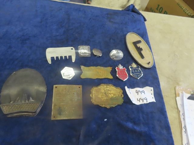 Chauffeur Badge, Waiter Badge, Various Tags, Atwater Kent Radio Tag, DE Laval Tag plus more