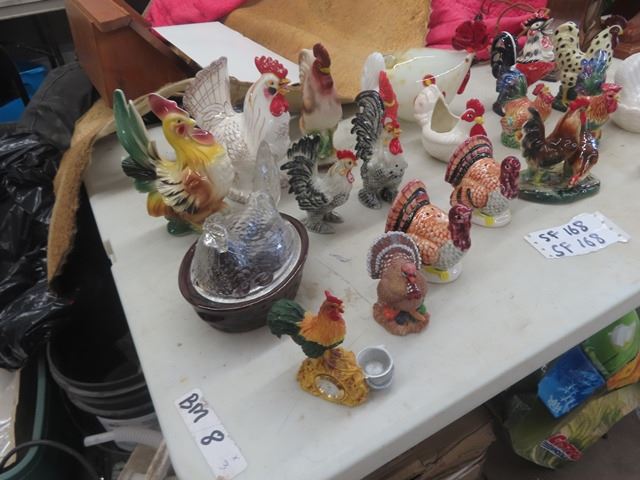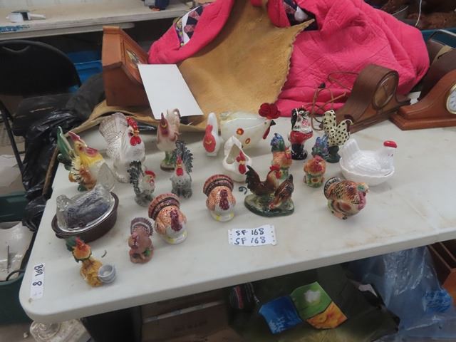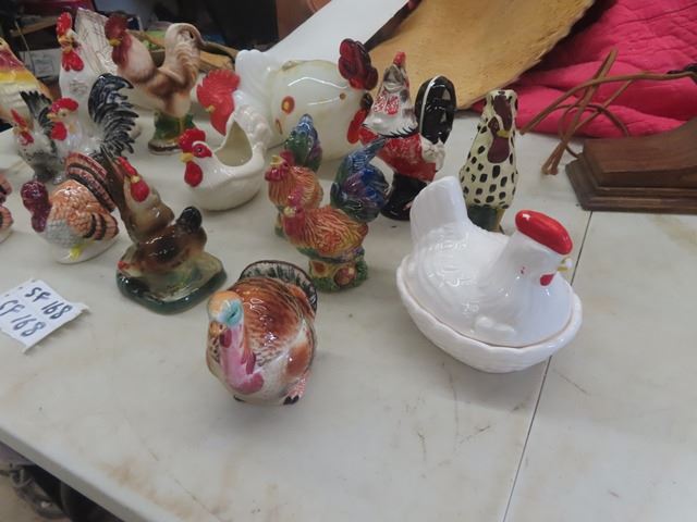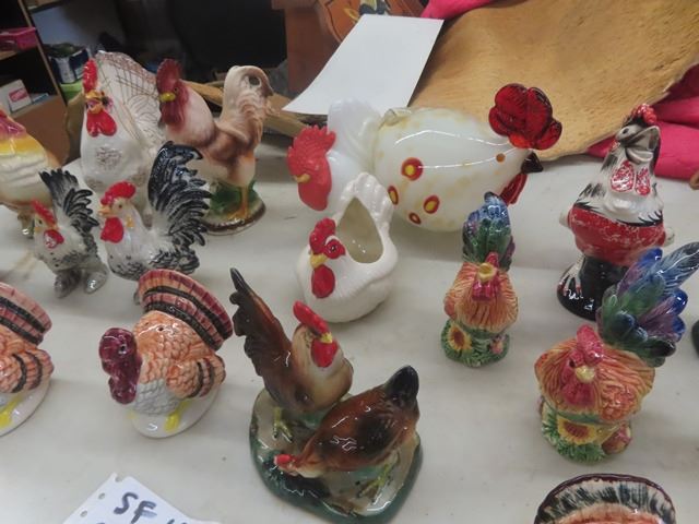 Chicken / Rooster Ornament Collection Including Salt + Pepper Shaker & Hen on Nest Candy Dish