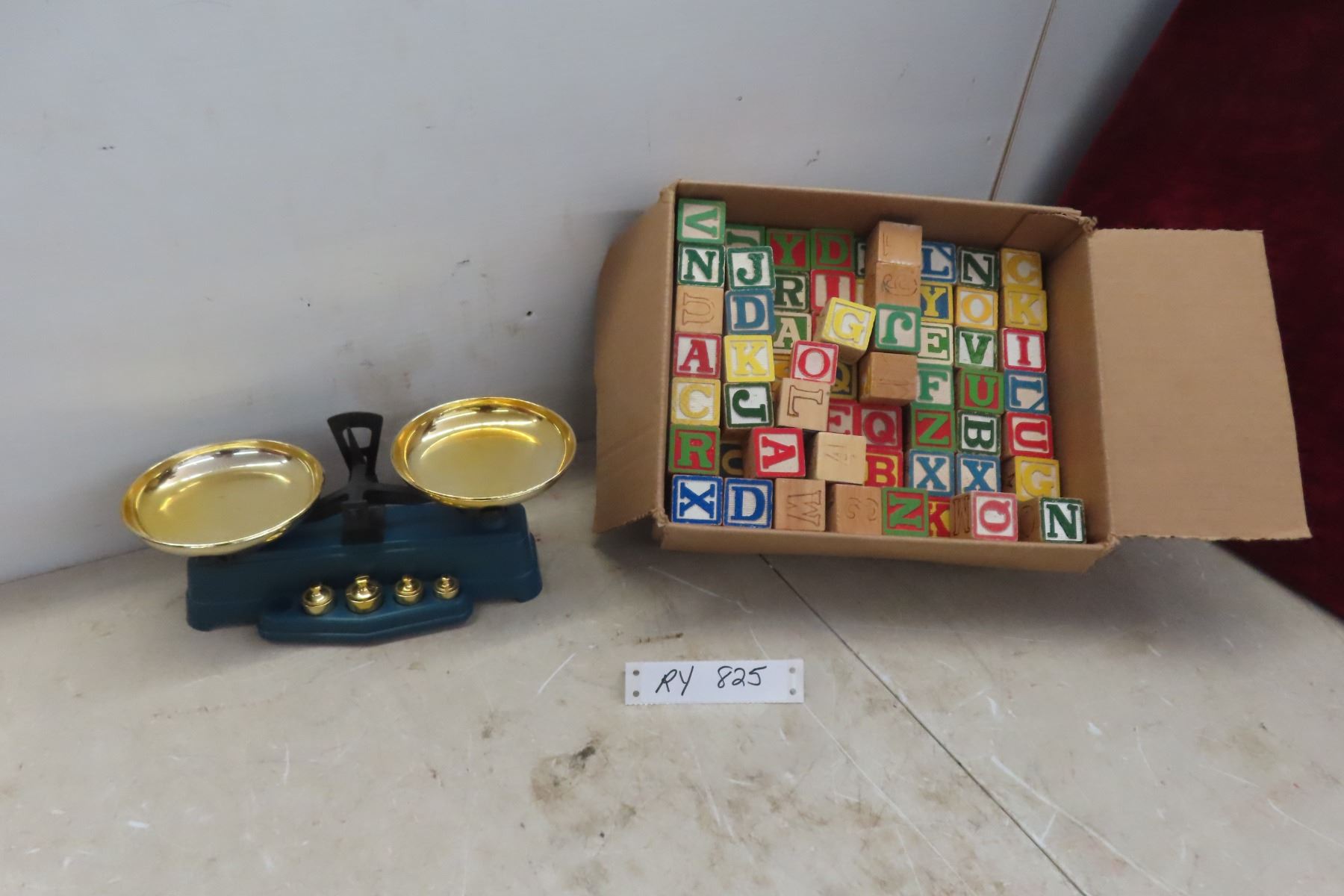 Children's Alphabet Wood Blocks (82) Play Balance Scale 1960's