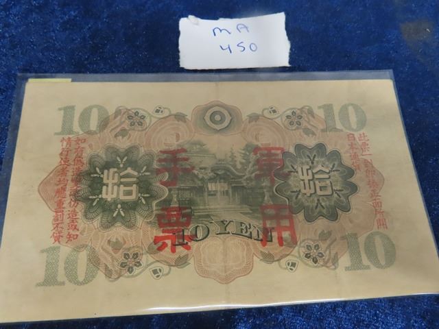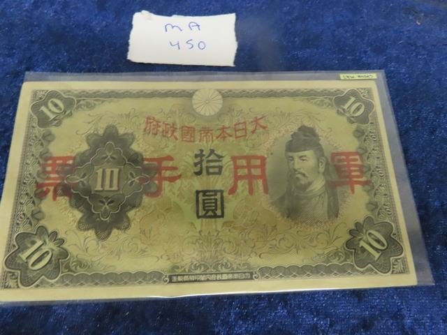 China 1938 Olive 10 Yen Japan Military Note M27 "RARE" VF Cond