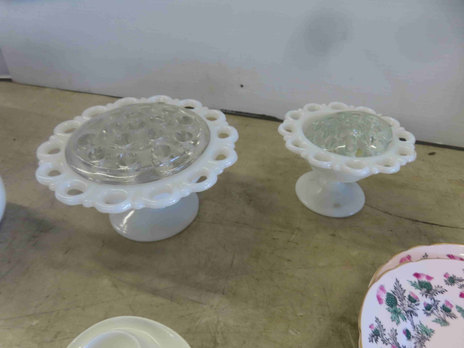 China Plates: 6 Tuscan, 6 Nikko, 2 Flower Frogs, Egg Cup, Cat Collector Plate, Plus