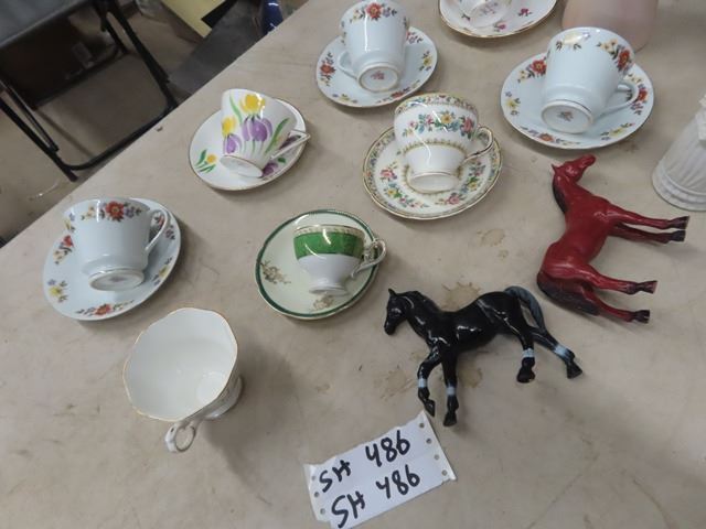 China Tea Cup + Saucers- Foley,Colclough Horse Ornaments