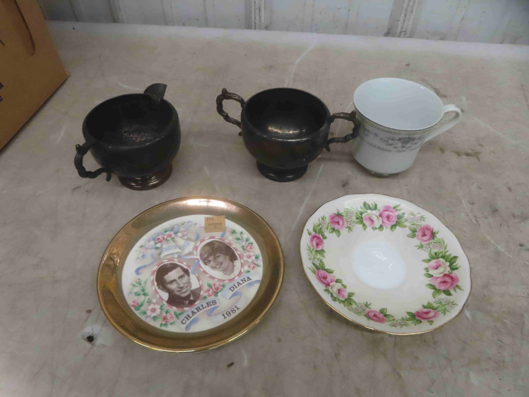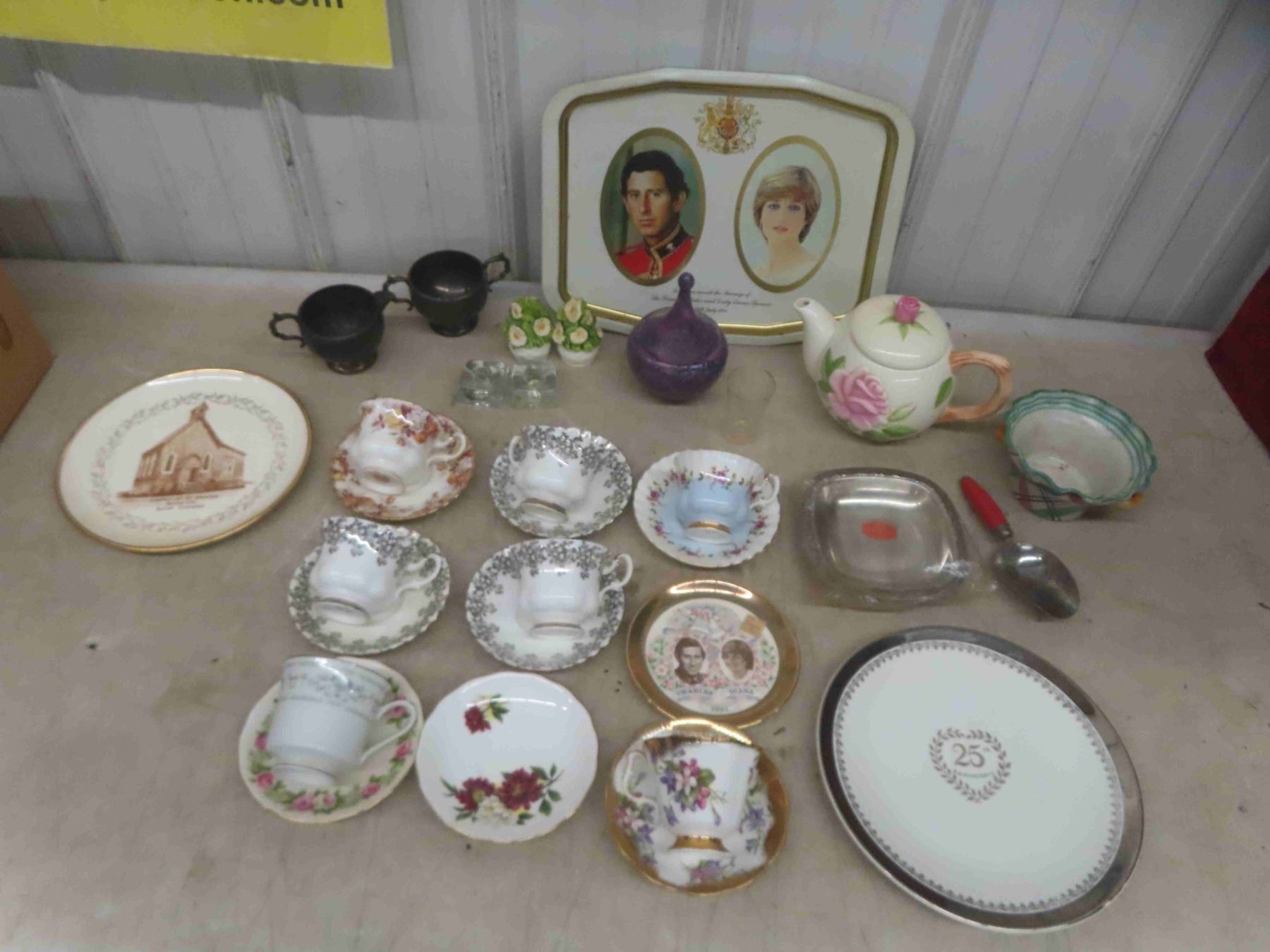 China Teacups and Saucers: Royal Albert, Silver Plated Cream and Sugar, Prince Charles and Dianne Tray & More