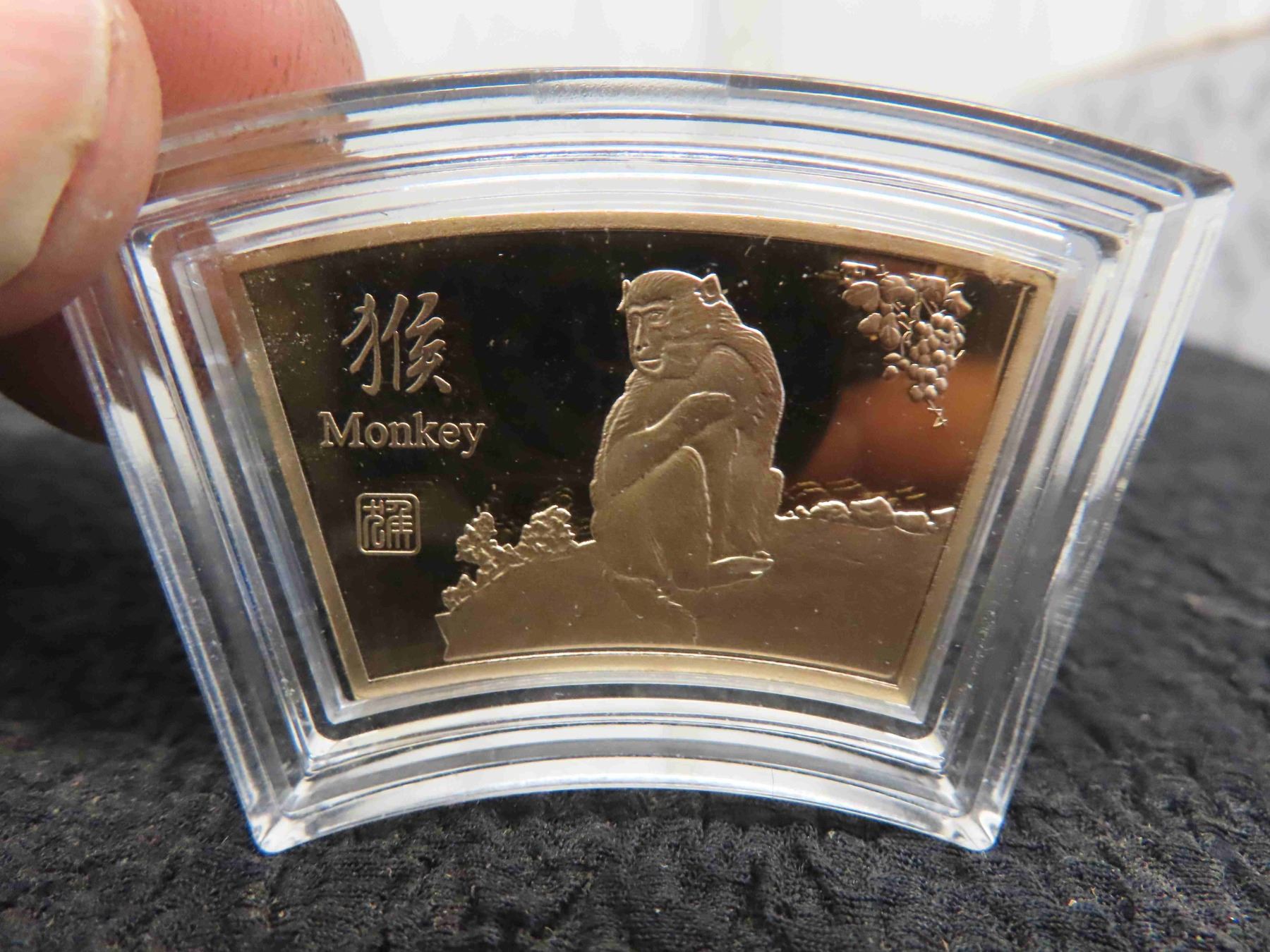 Chinese Monkey Fan Shaped Medallion 24ct Gold Plated