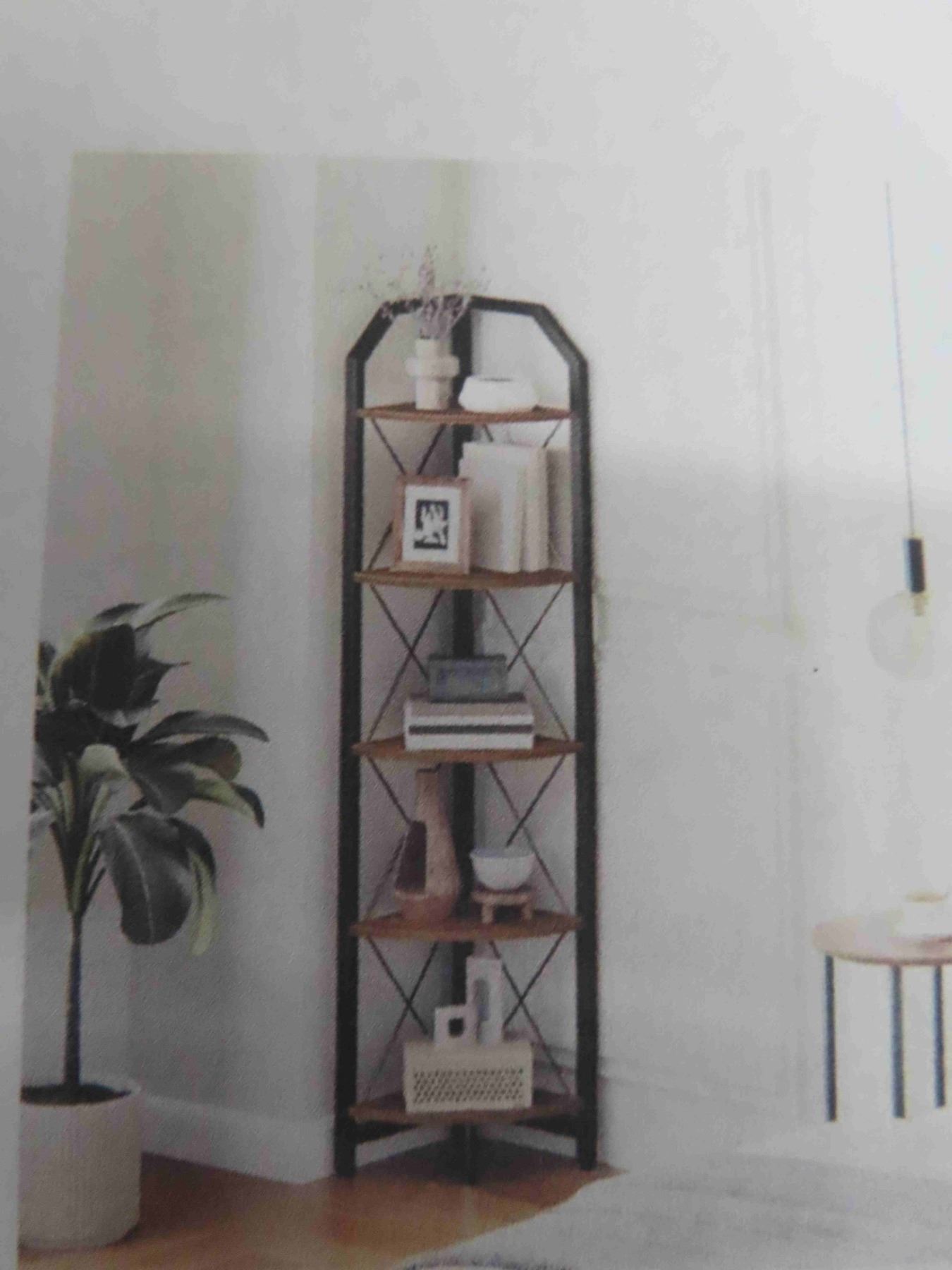Choezon 59.4'' Corner Shelf, 5 Tier Industrial Corner Bookshelf, Corner Storage Stand, Plant Stand Display, Bookcase for Bedroom, Living Room, Home Office, Rustic Brown and Black TCJ10BF - NEW OR STORE RETURN.