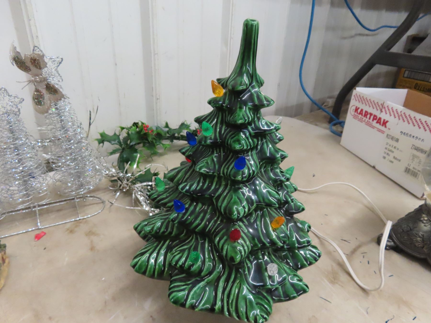 Christmas: Ceramic Light Up Tree 13'' H , 2 Snow Globes, Tins, Ornaments & More