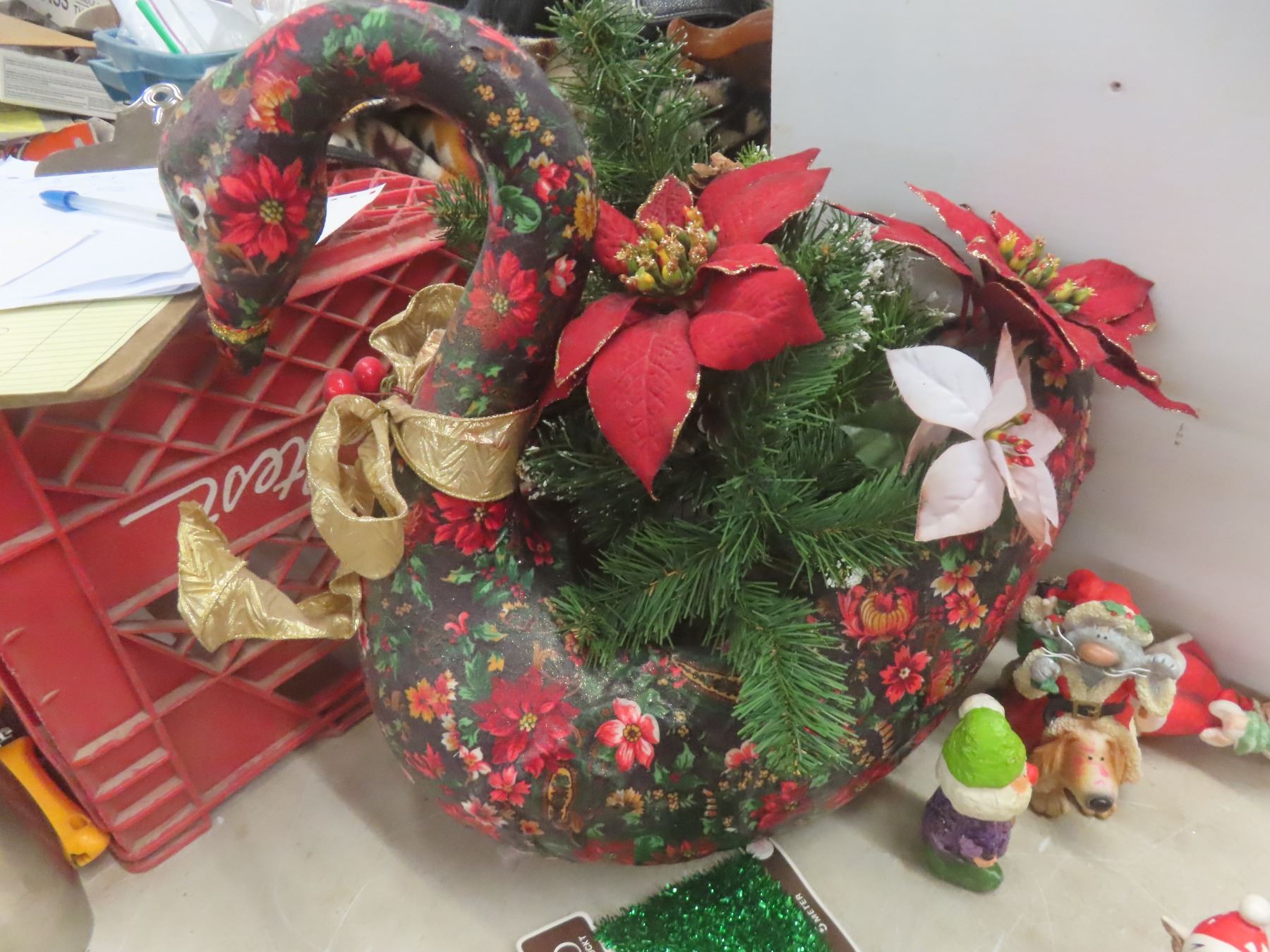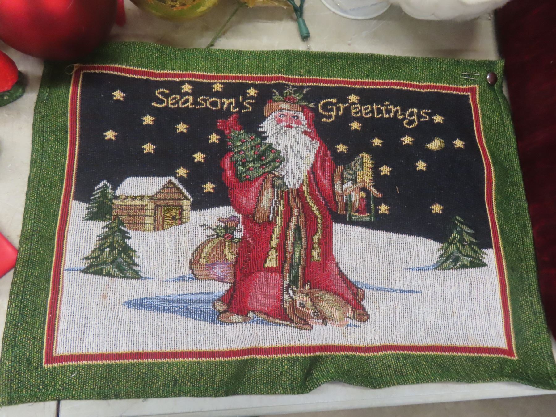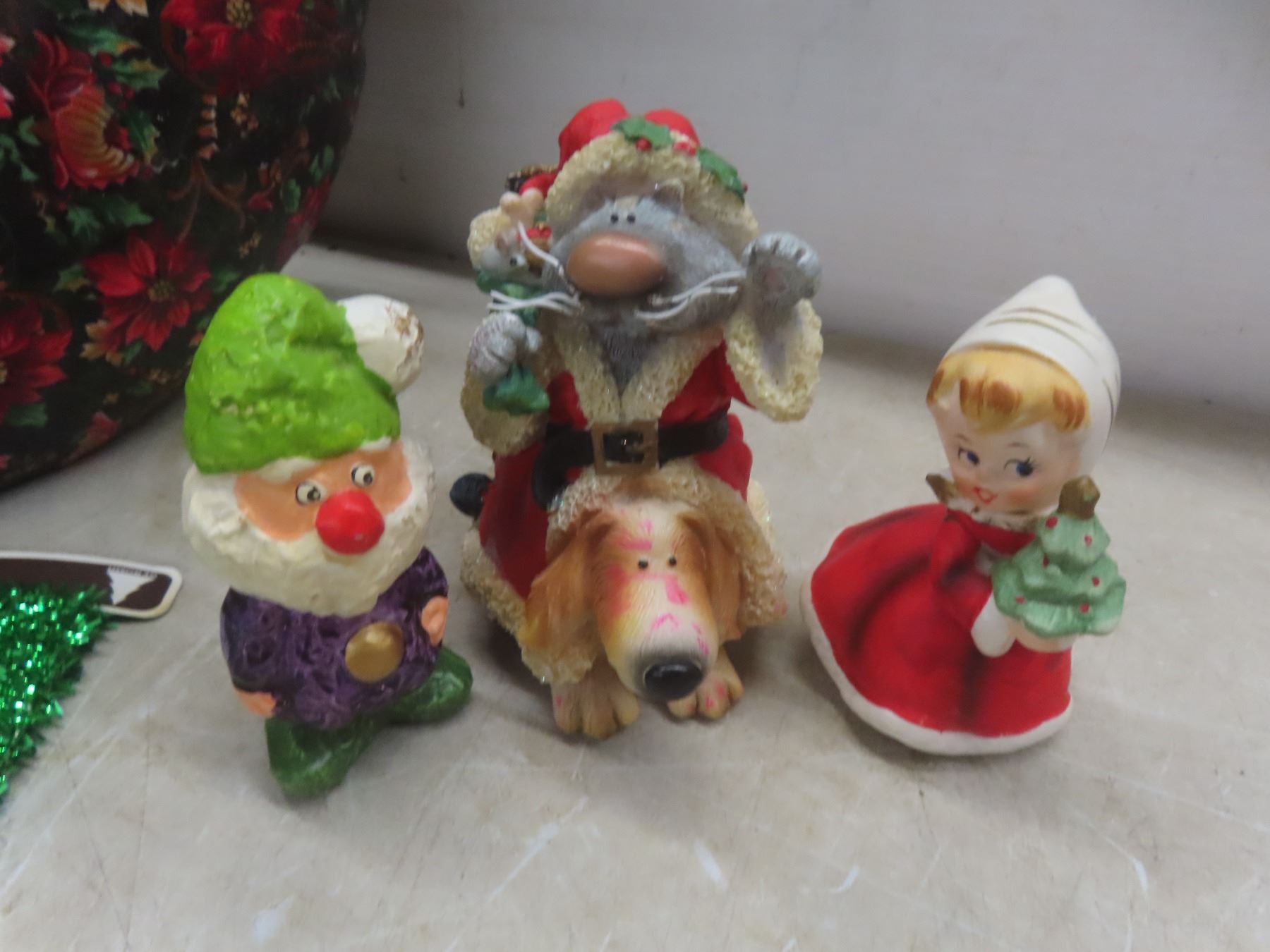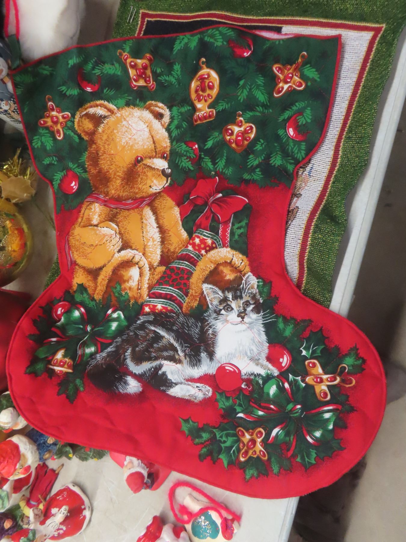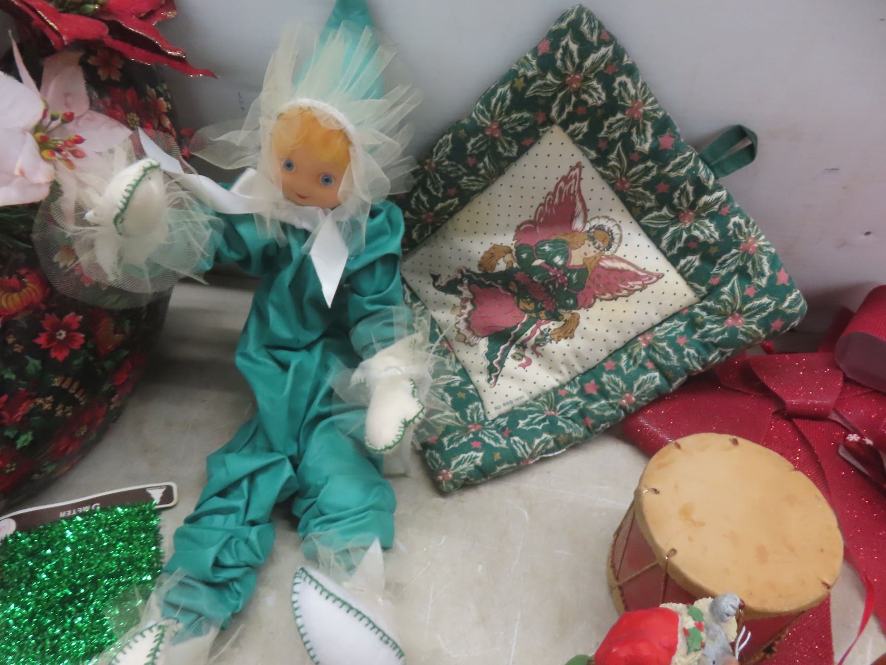 Christmas Décor Lot Including Candle Holder, Stuffed Bear, and More