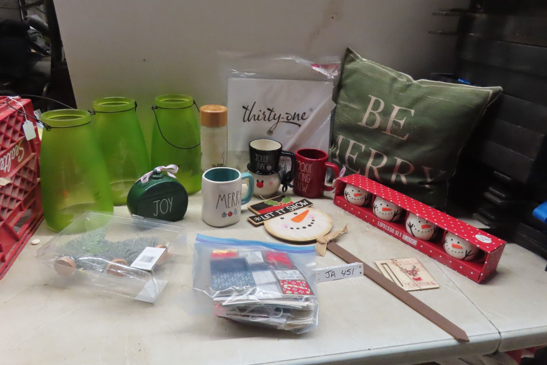 Christmas Décor New Toss Cushion, 4PC Espresso Set, Coffee Mugs, Gift Tags, 3 Glass Jugs