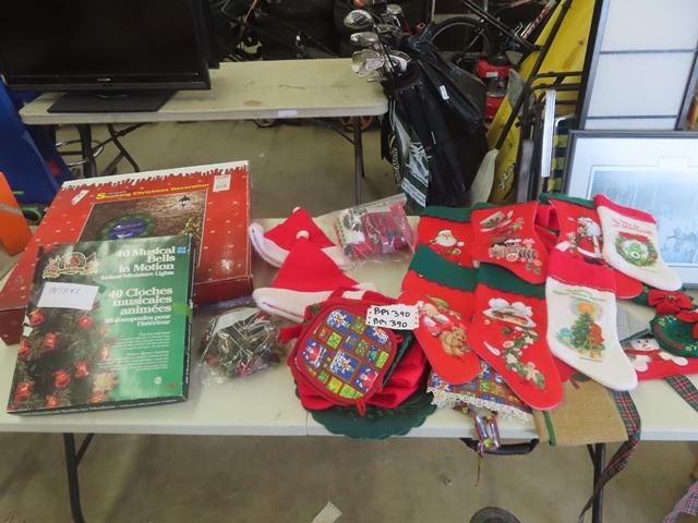 Christmas Decor Items ; Musical Wreath, Stockings plus more