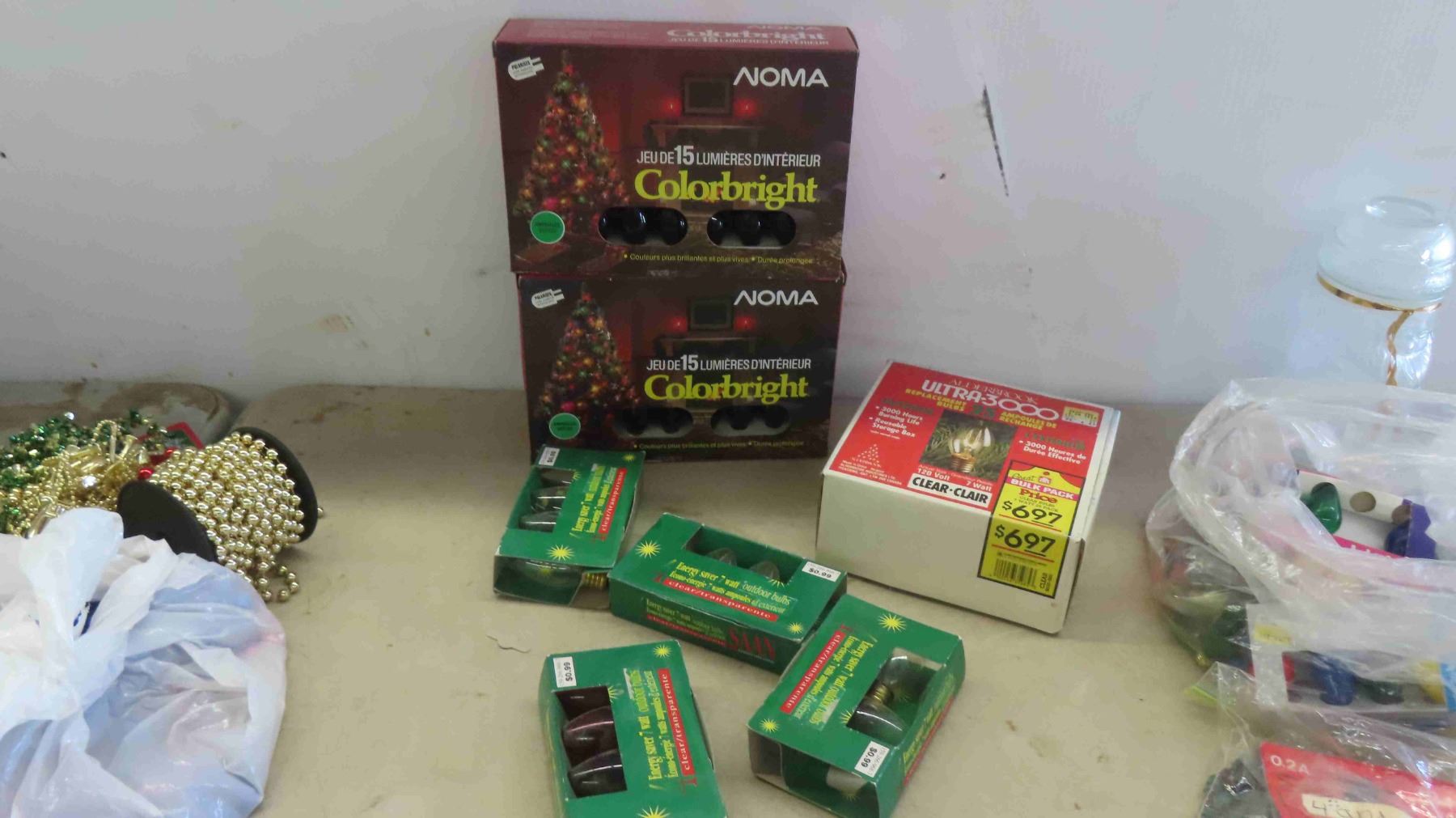 Christmas Decorations , Beads , Lights , Window Decals , Some Vintage