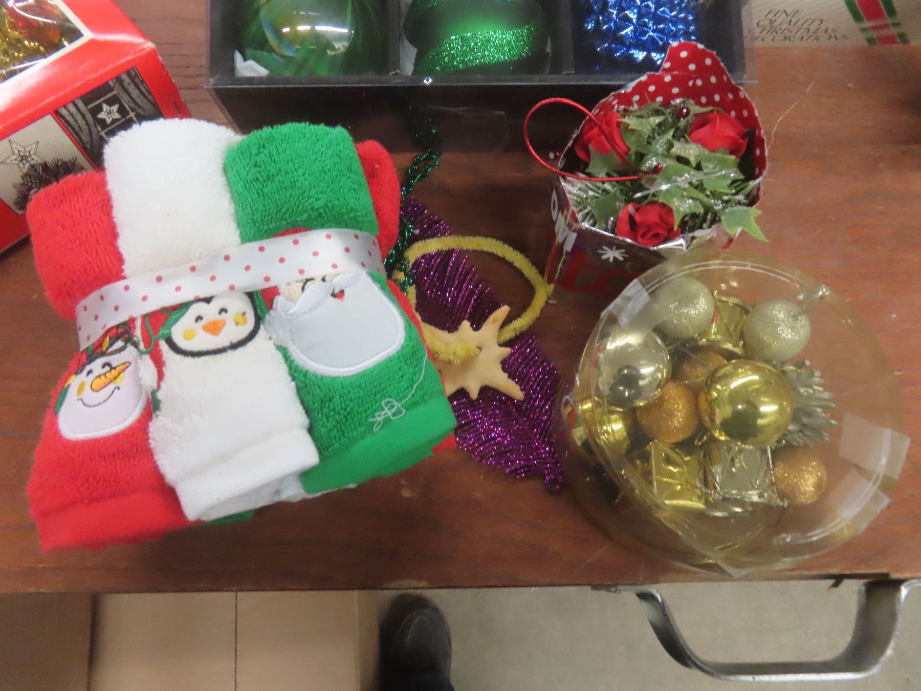 Christmas Decorations — Tree Ornaments, Garland, Face Cloths, With Tote.