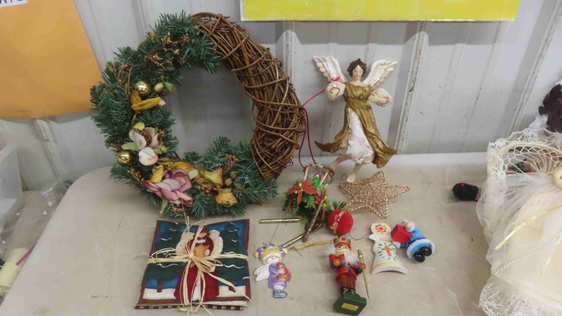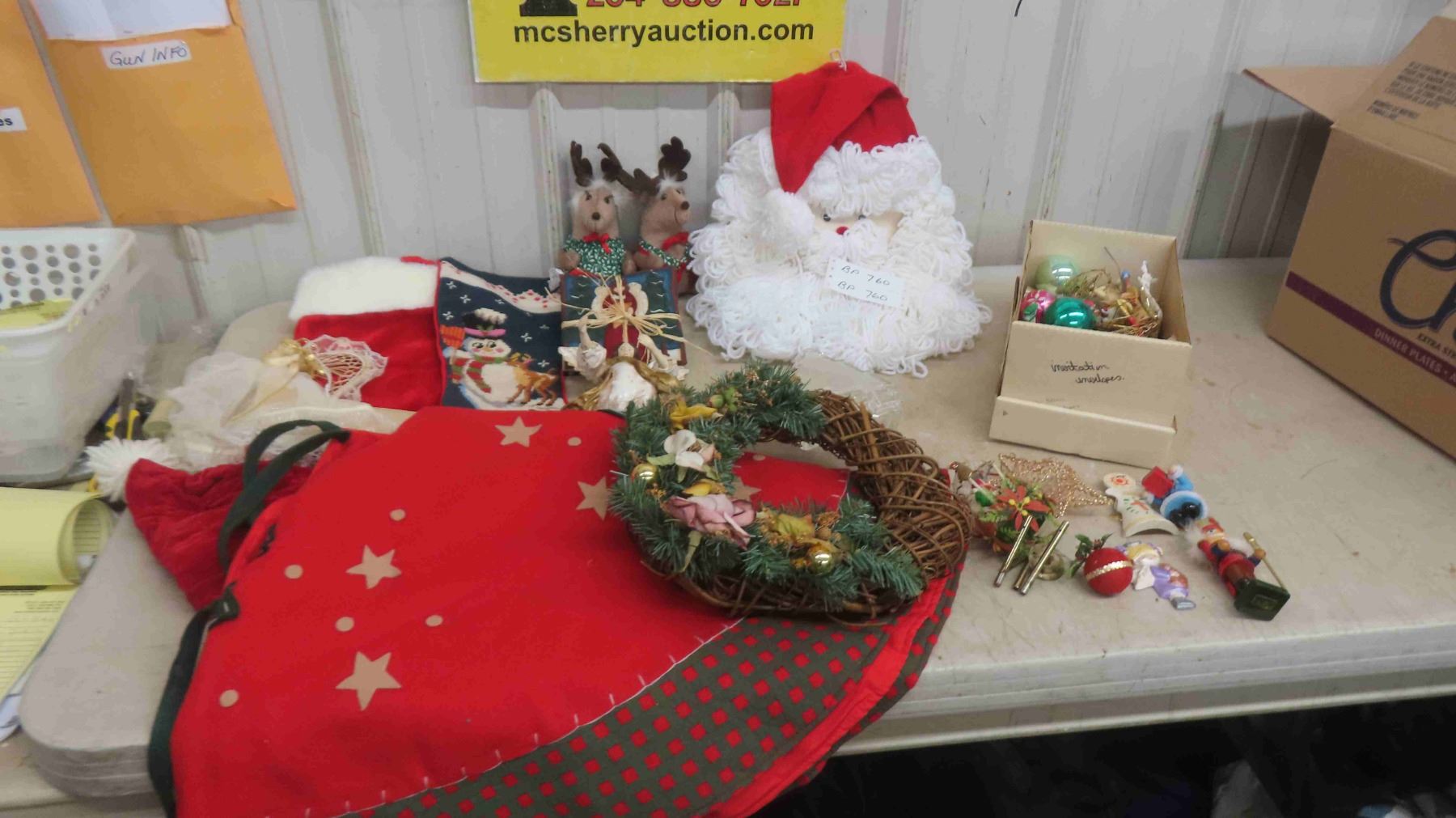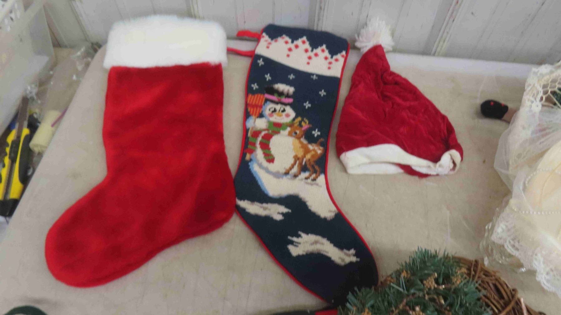 Christmas Decorations : Tree Skirt, Wreath, Hanging Santa Face, Stockings & More