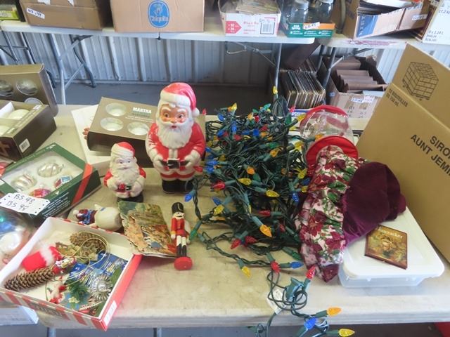 Christmas Items - Bulbs, Santa Ornaments, Tub Full Of Various