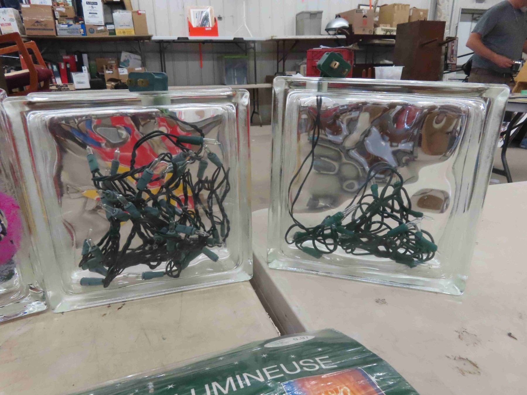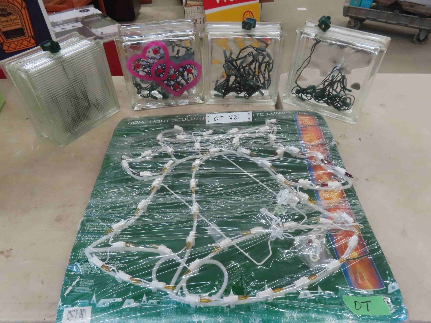 Christmas Light Up Bell , 4 Glass Blocks with Christmas Lights