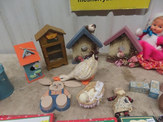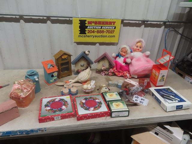 Christmas Pie Frames + Dish, Vintage Dolls, Craft Displays, Curling Iron plus more