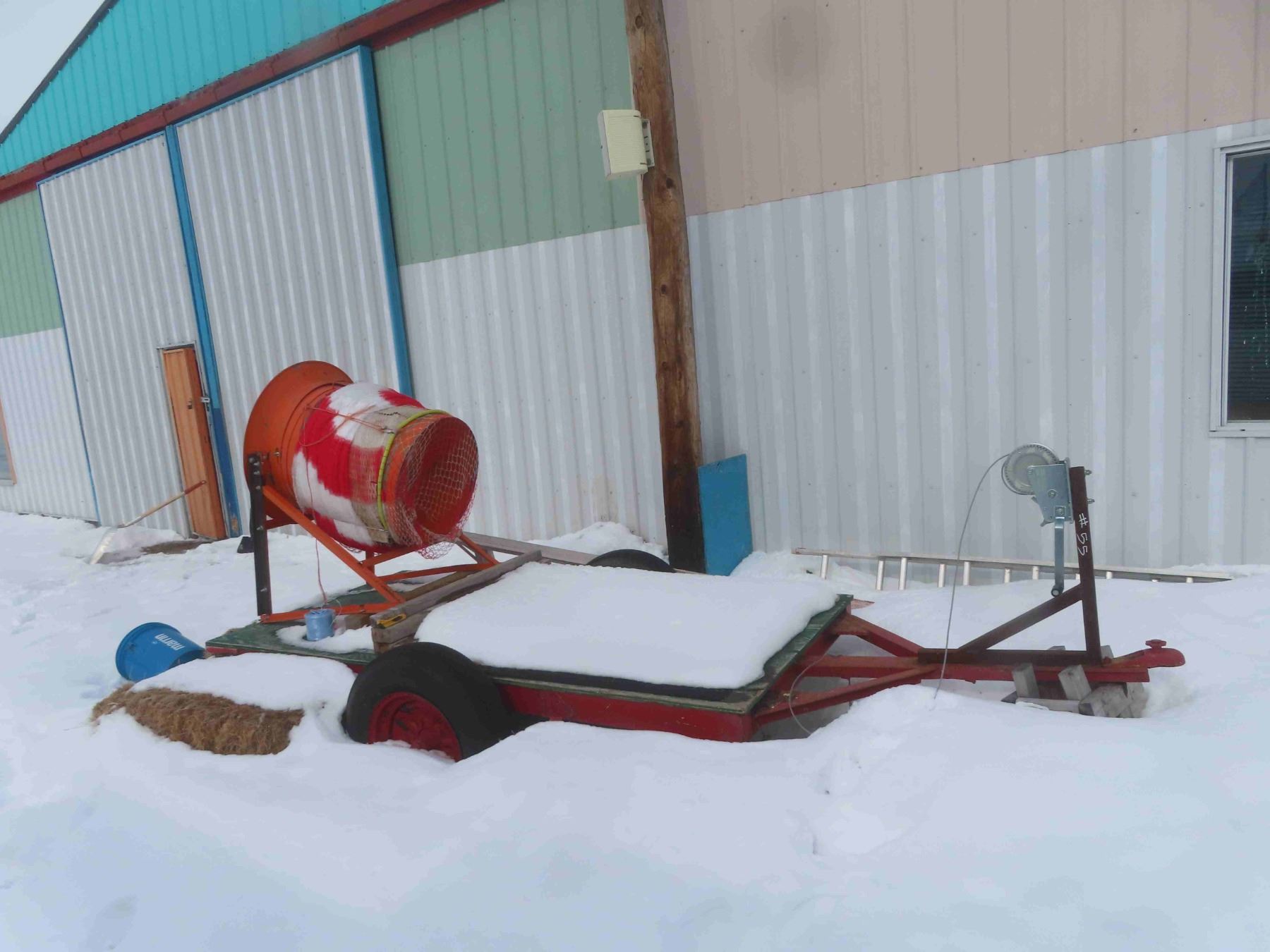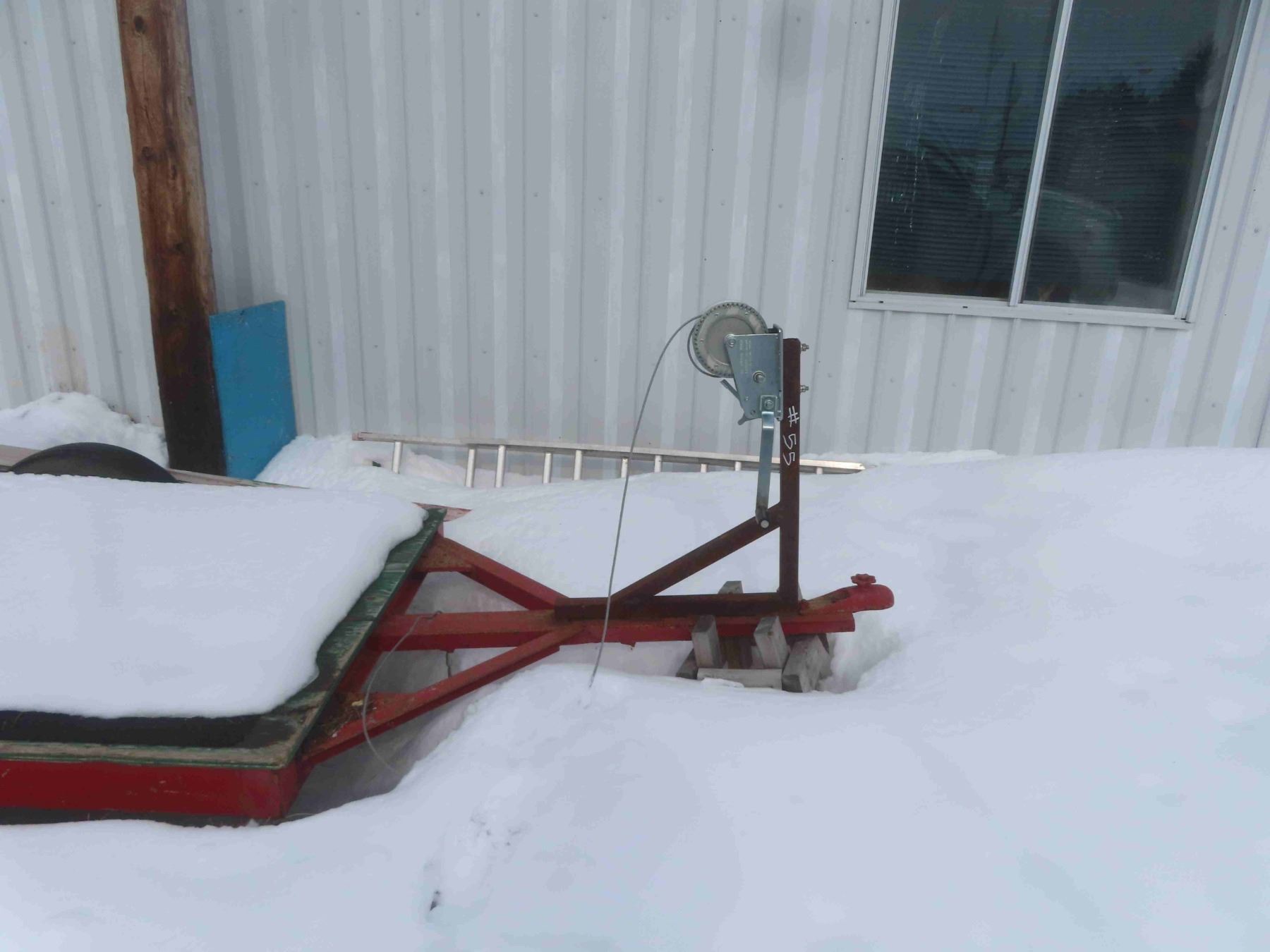 Christmas Tree Bagging Device Mounted on Bumper Hitch Trailer with Hand Winch Tree