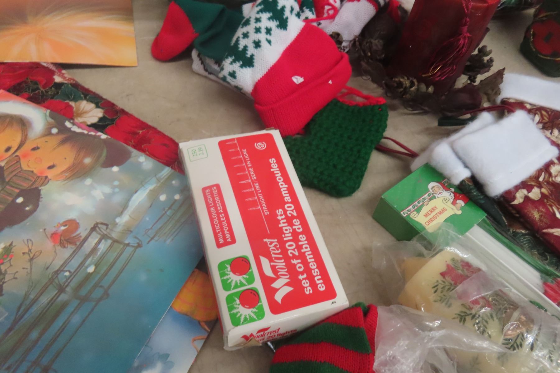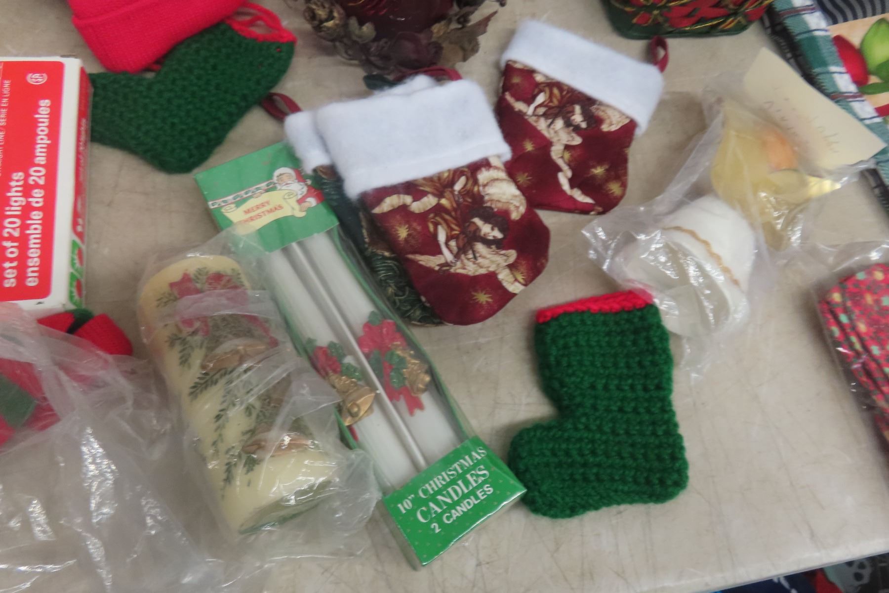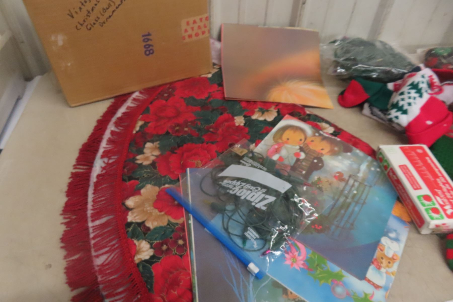 Christmas Tree Skirt, Handmade Quilt, Four Stockings, and Variety of Christmas Decorations