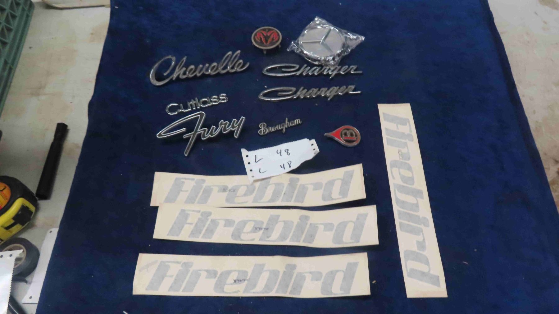 Chrome Auto Emblems ; Charger, Chevelle, Fury, plus others & (4 ) Firebird Stickers