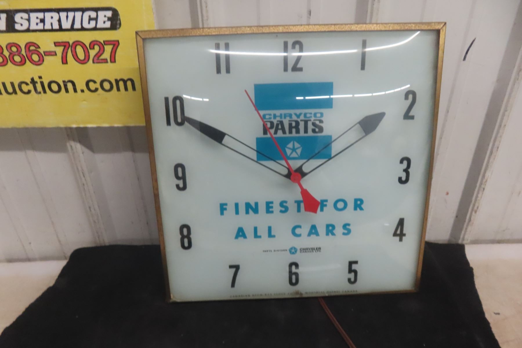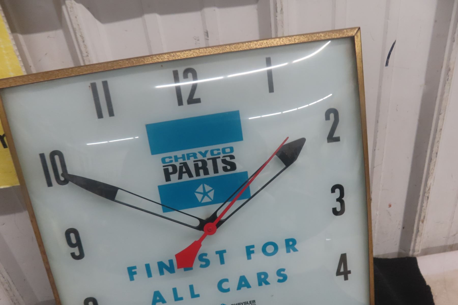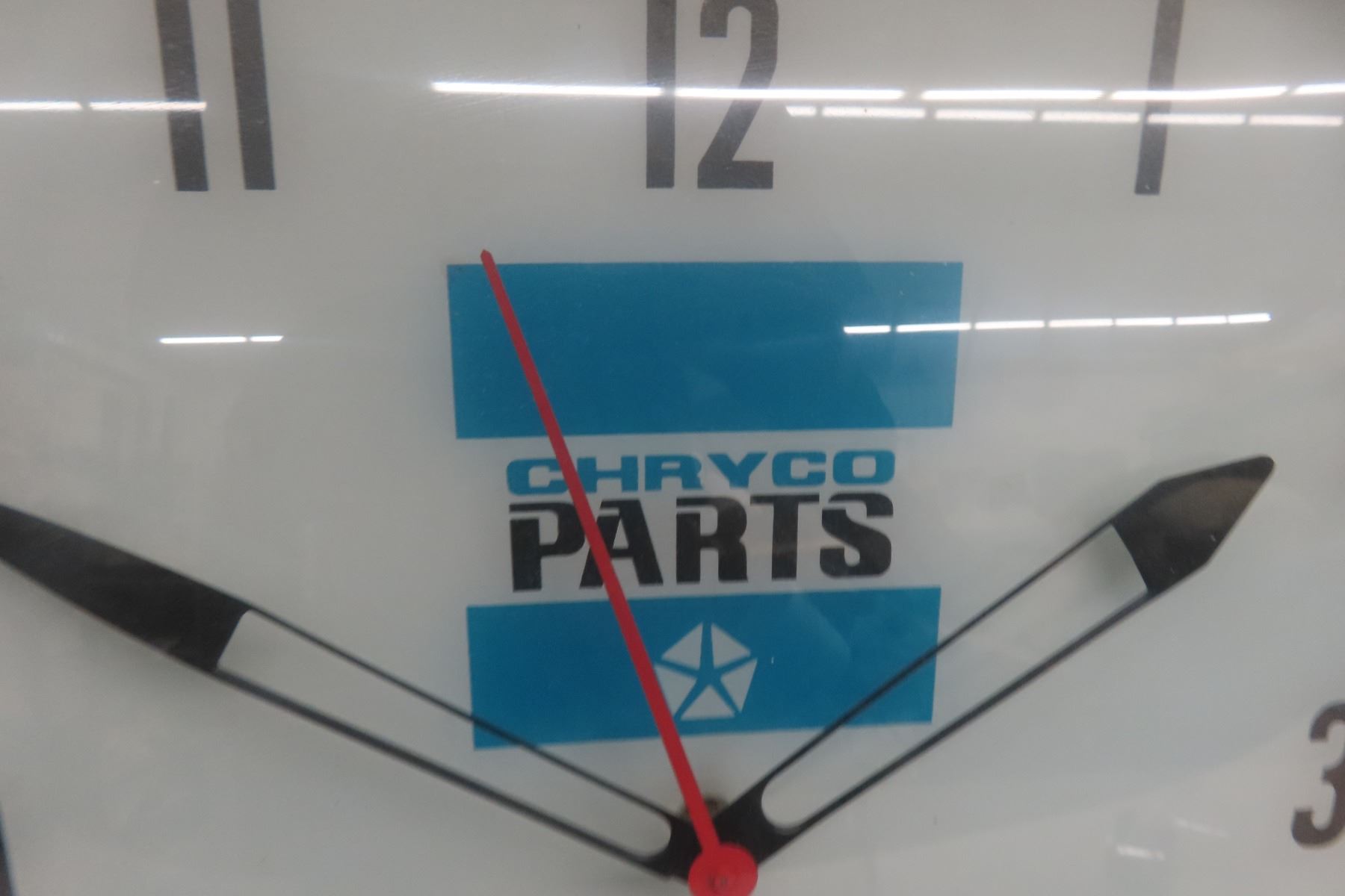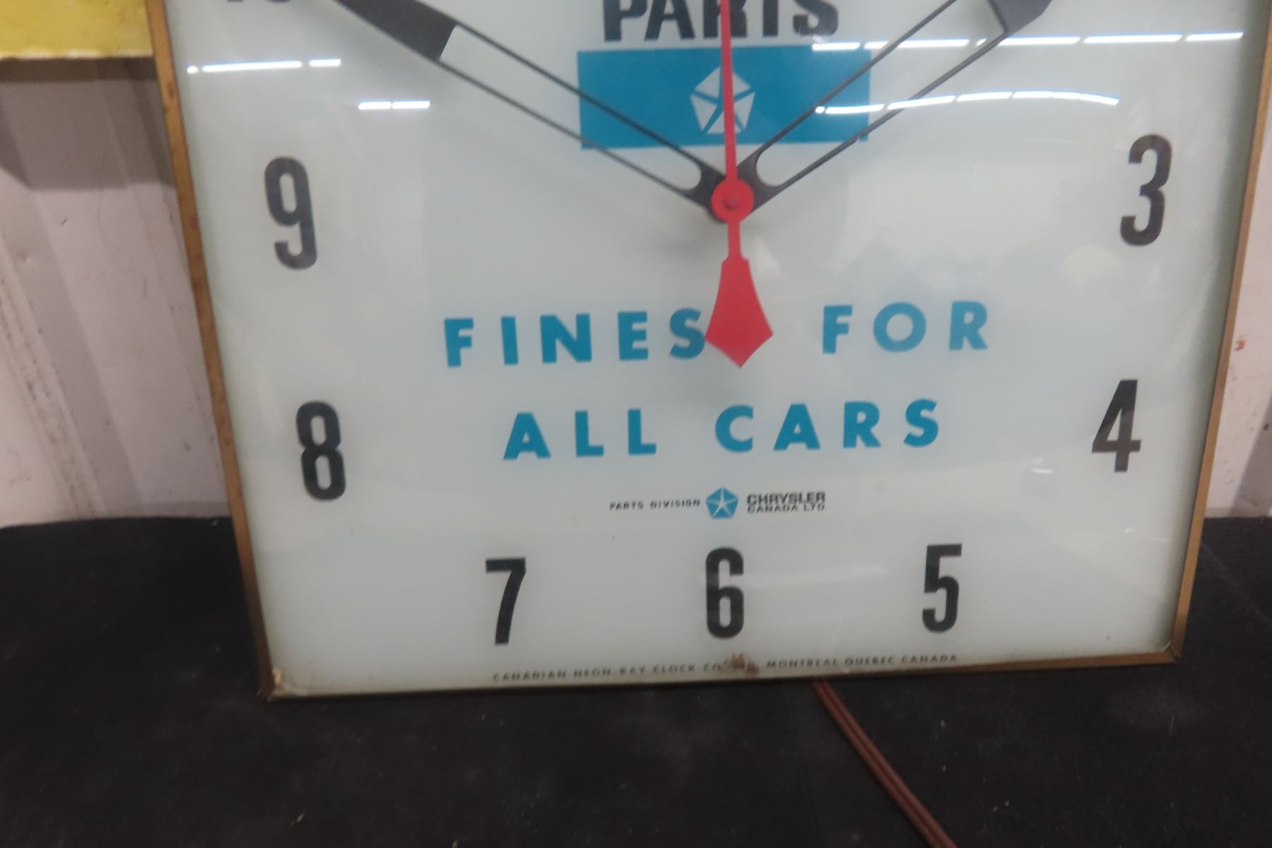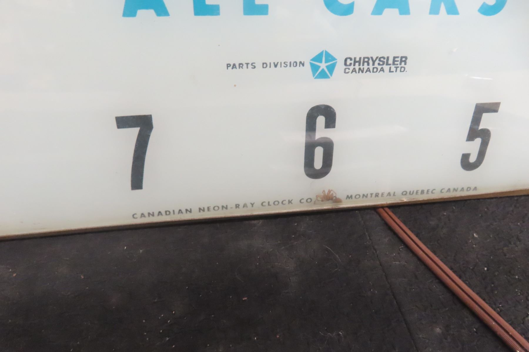 Chry Co Parts Clock - Working Clock 15" x 15", 1960s, Neon Ray Clock Co