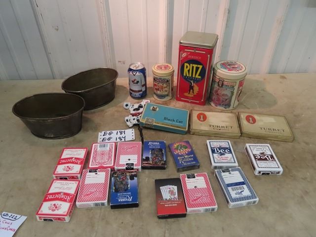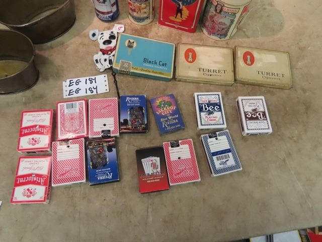 Cig Tins, Black Cat, Turret, 13 Decks of Cards, & Various Tins