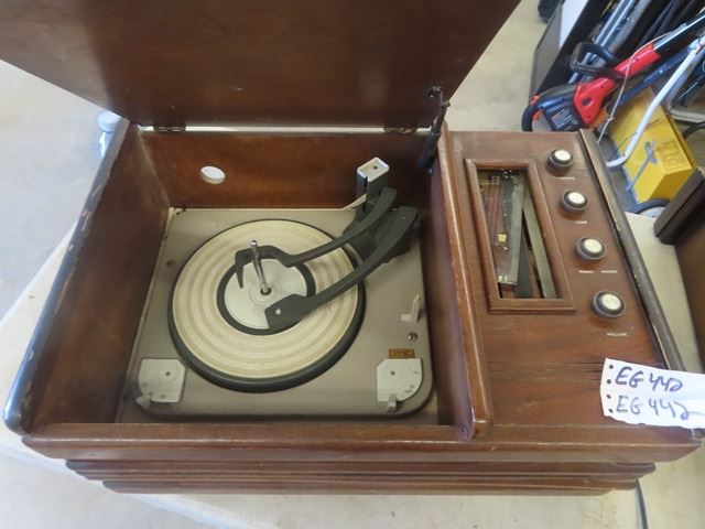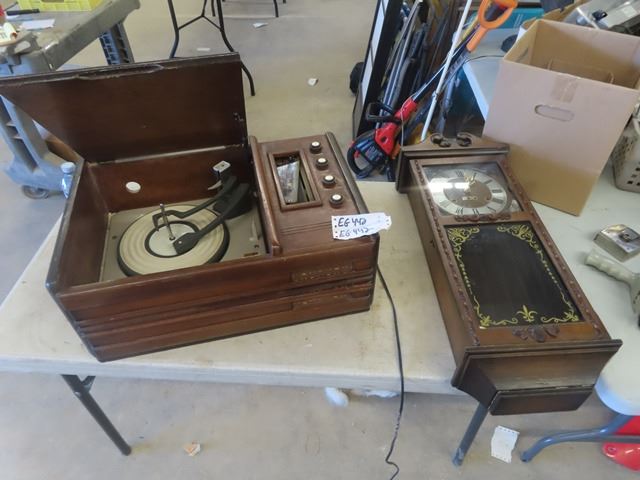 Citizen 31 Day Regulator Clock & Firestone + Rubber Company Wooden Record Player
