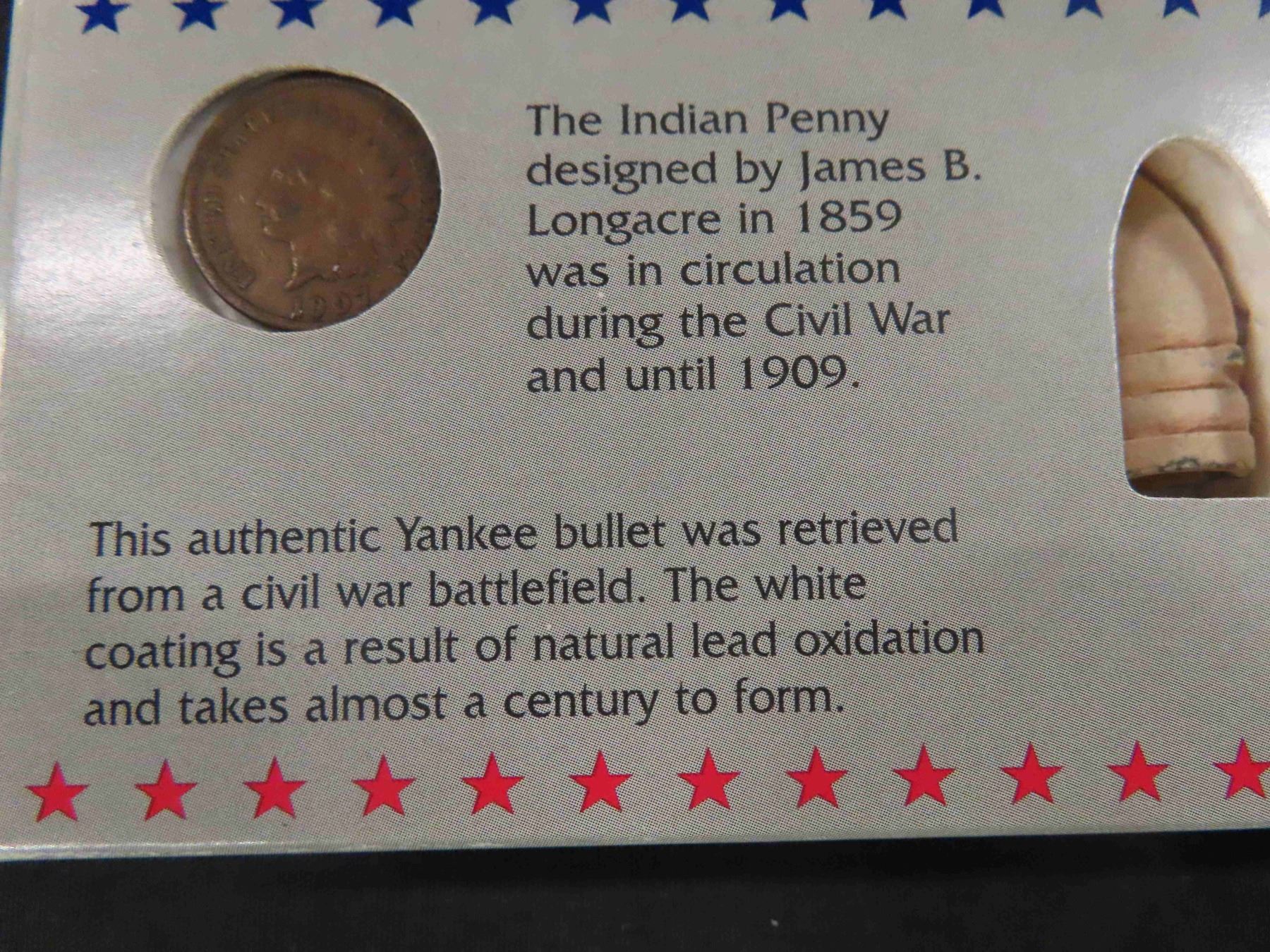 Civil War Remembrance Penny , Stamp , Bullet Collection in Box