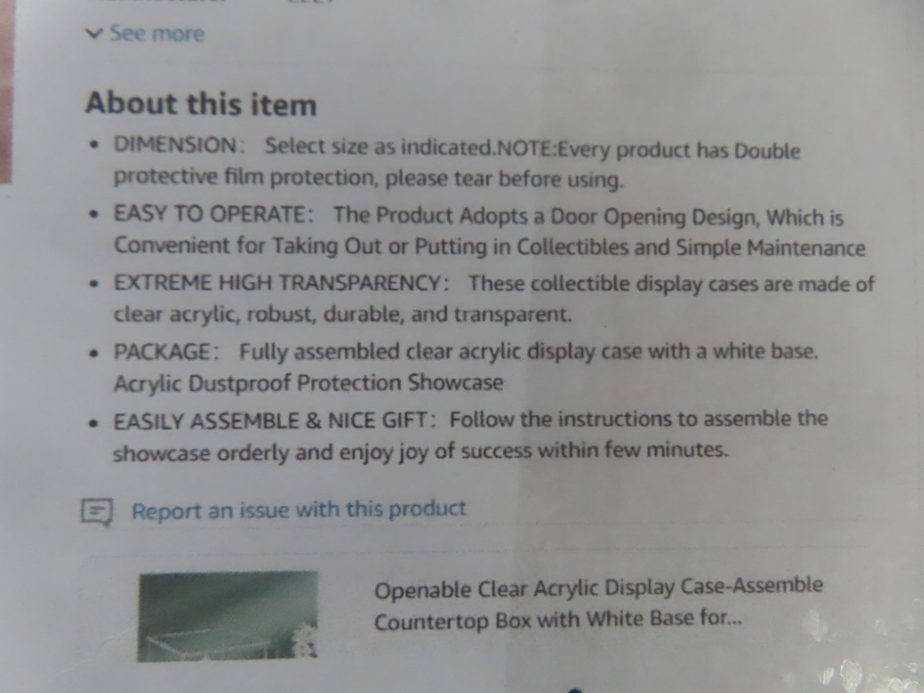 Clear Acrylic Display Case , Dustproof Protection - Showcase for Action Figures, Toys, Collectables- New or Store Return