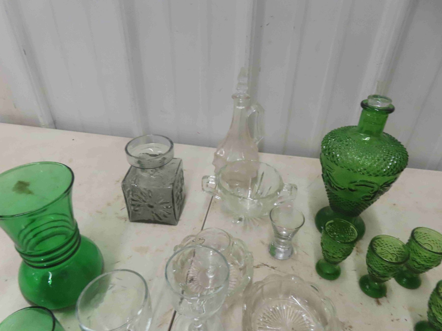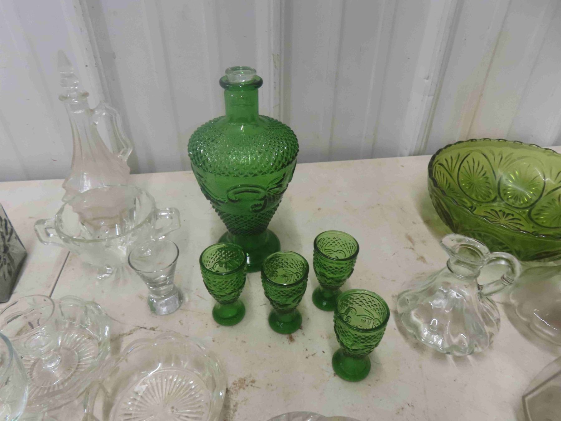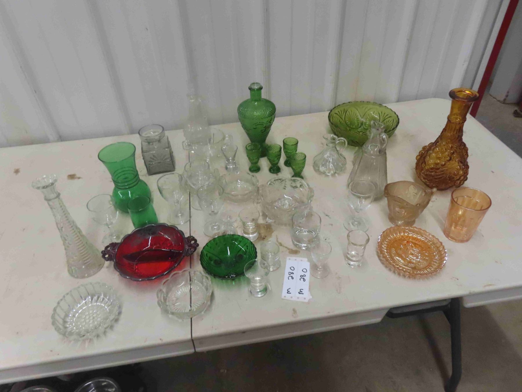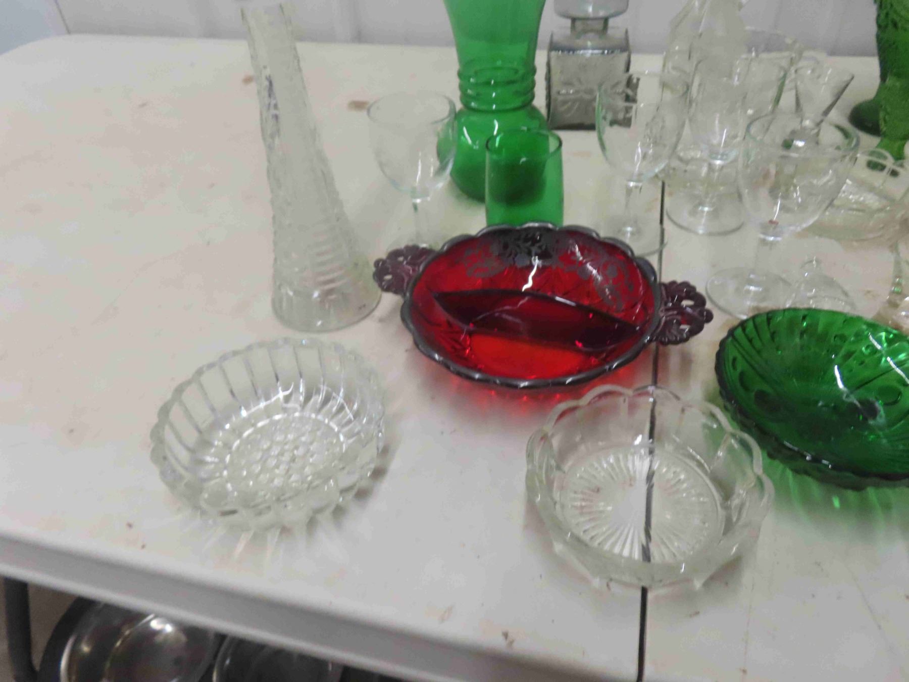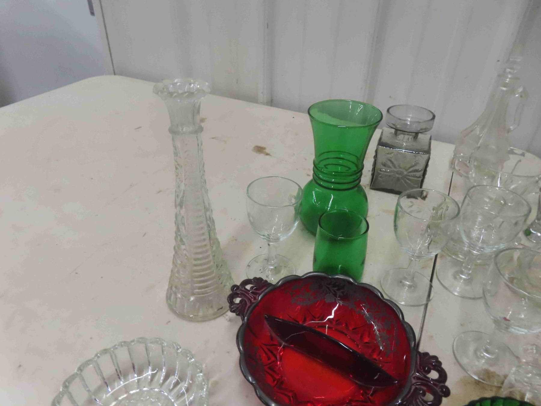 Clear & Colored Glassware, Decanters, Trays, Bowls &