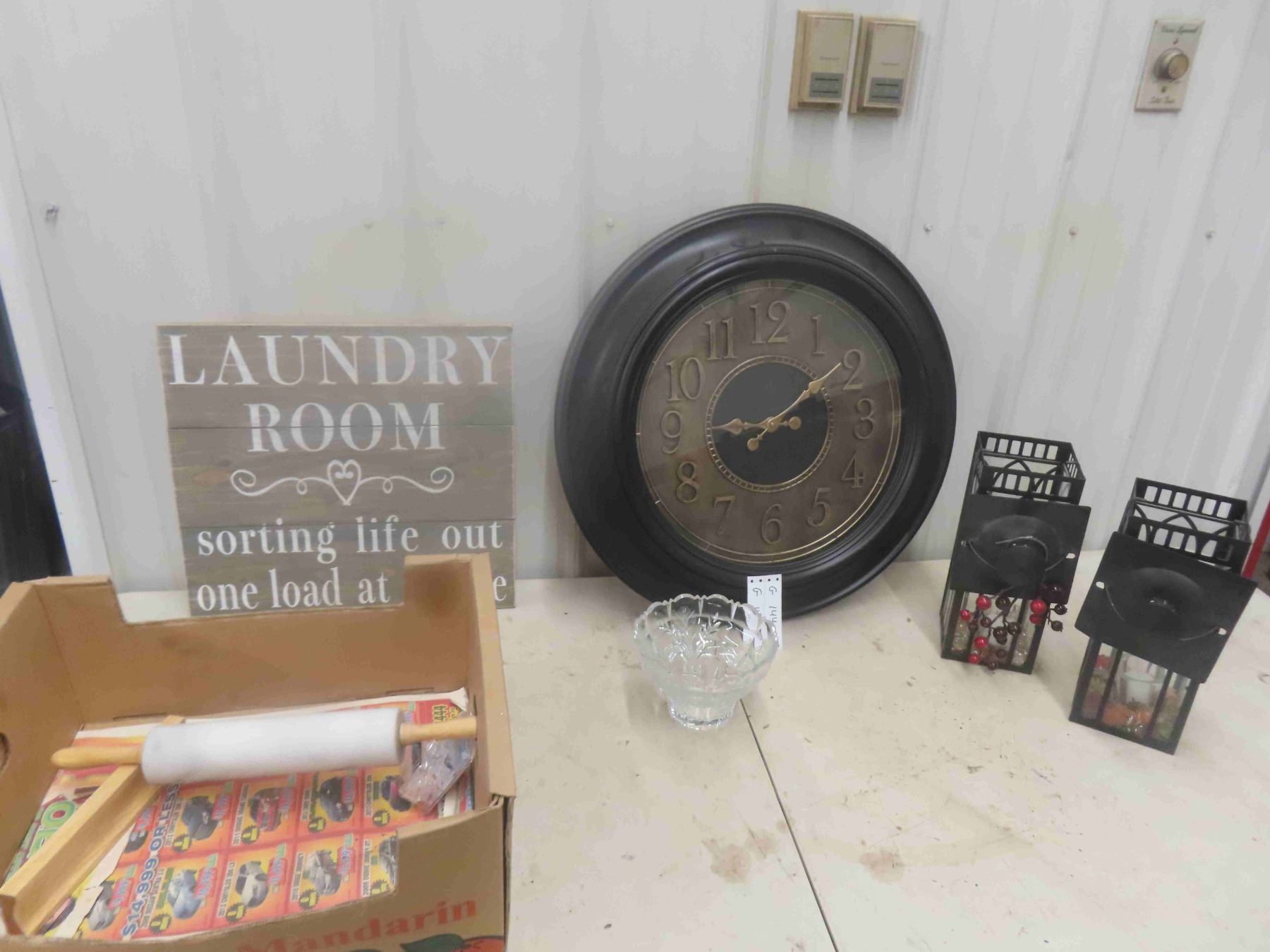 Clock, Slogan On Wood, Candlier, Rolling Pin & More
