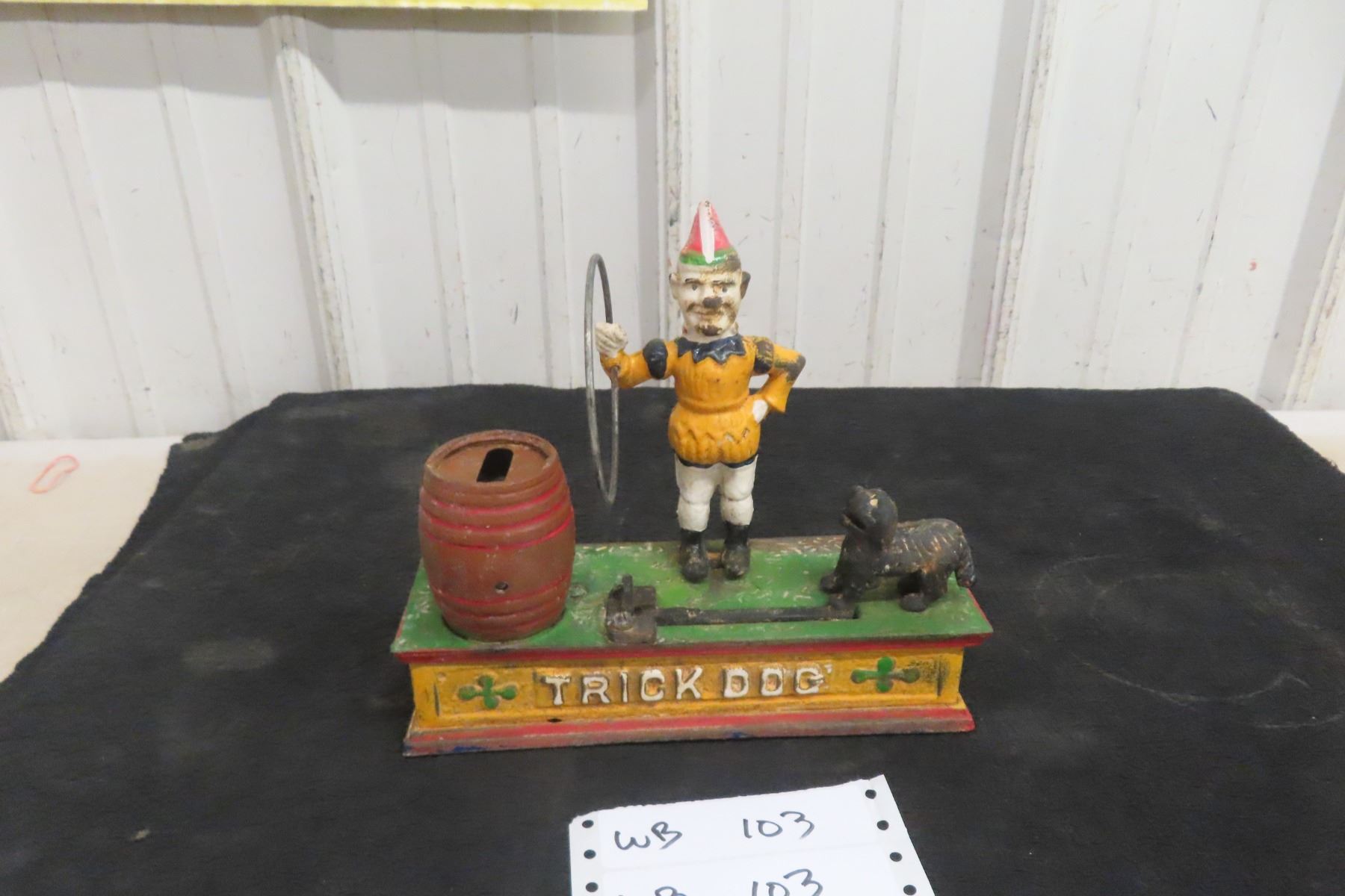 Clown & Trick Dog Mechanical Cast Iron Coin Bank - Works!