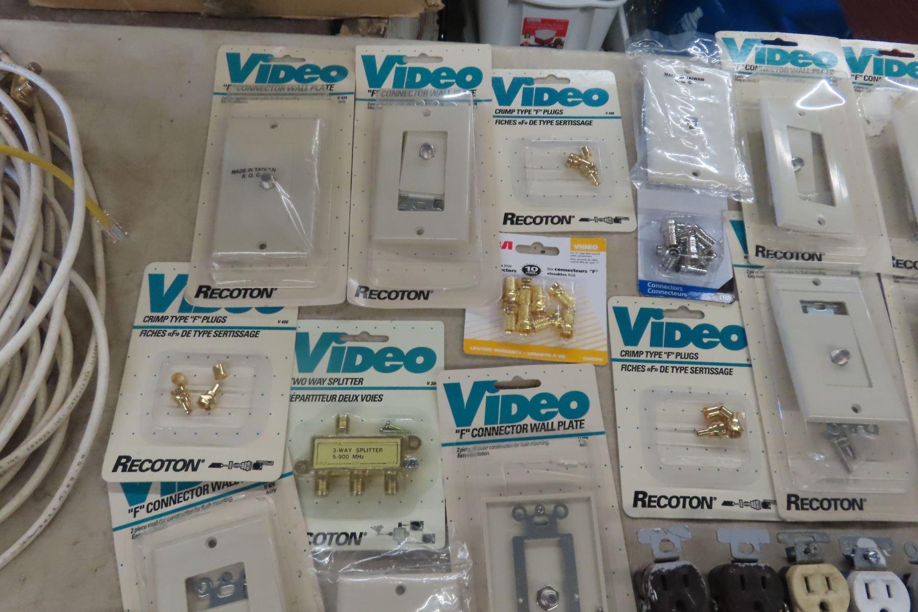 Coaxial Cable, Connectors, Light Switches, Receptacles, Exterior Light + Face Plate Covers for F Connectors