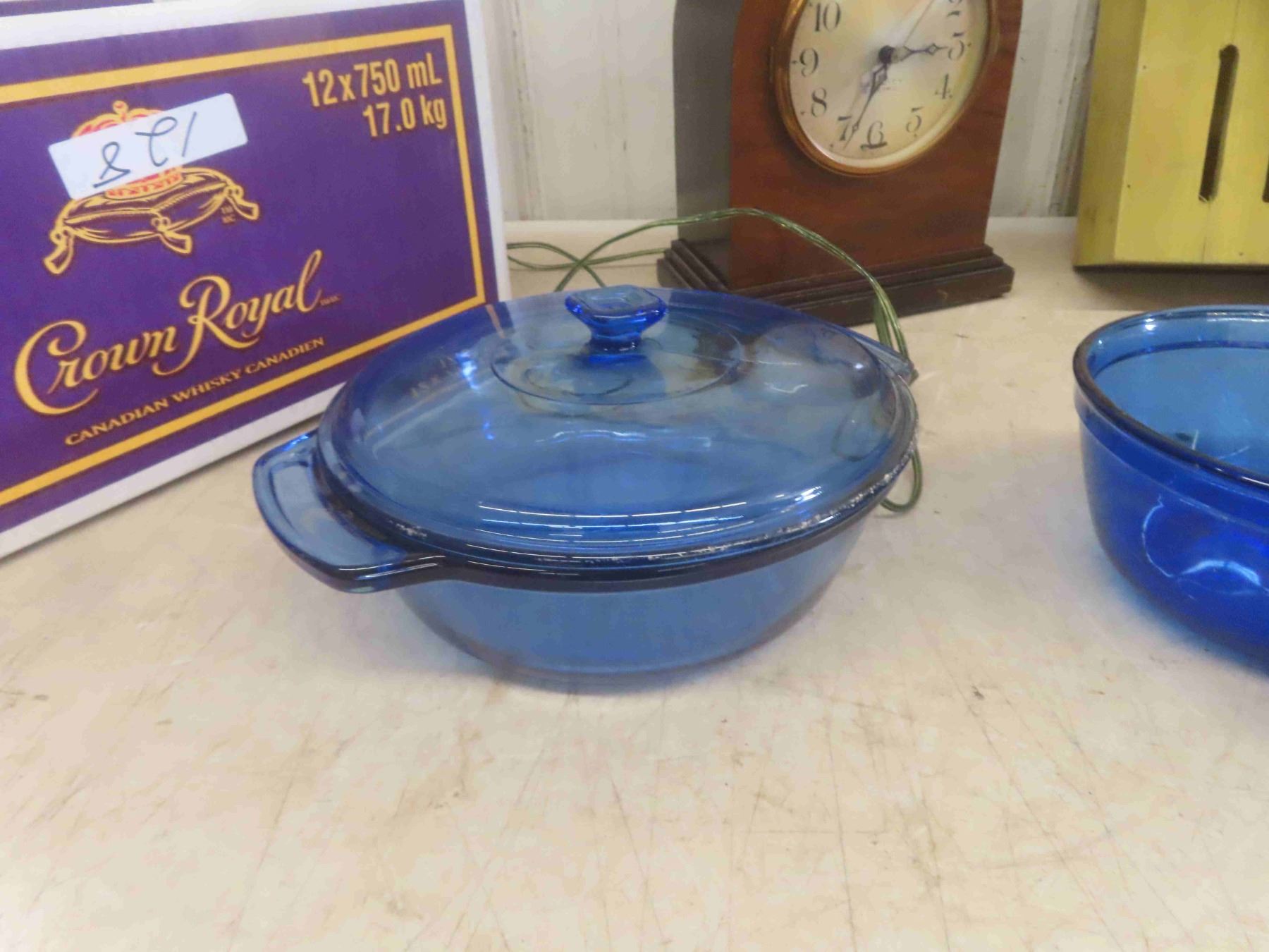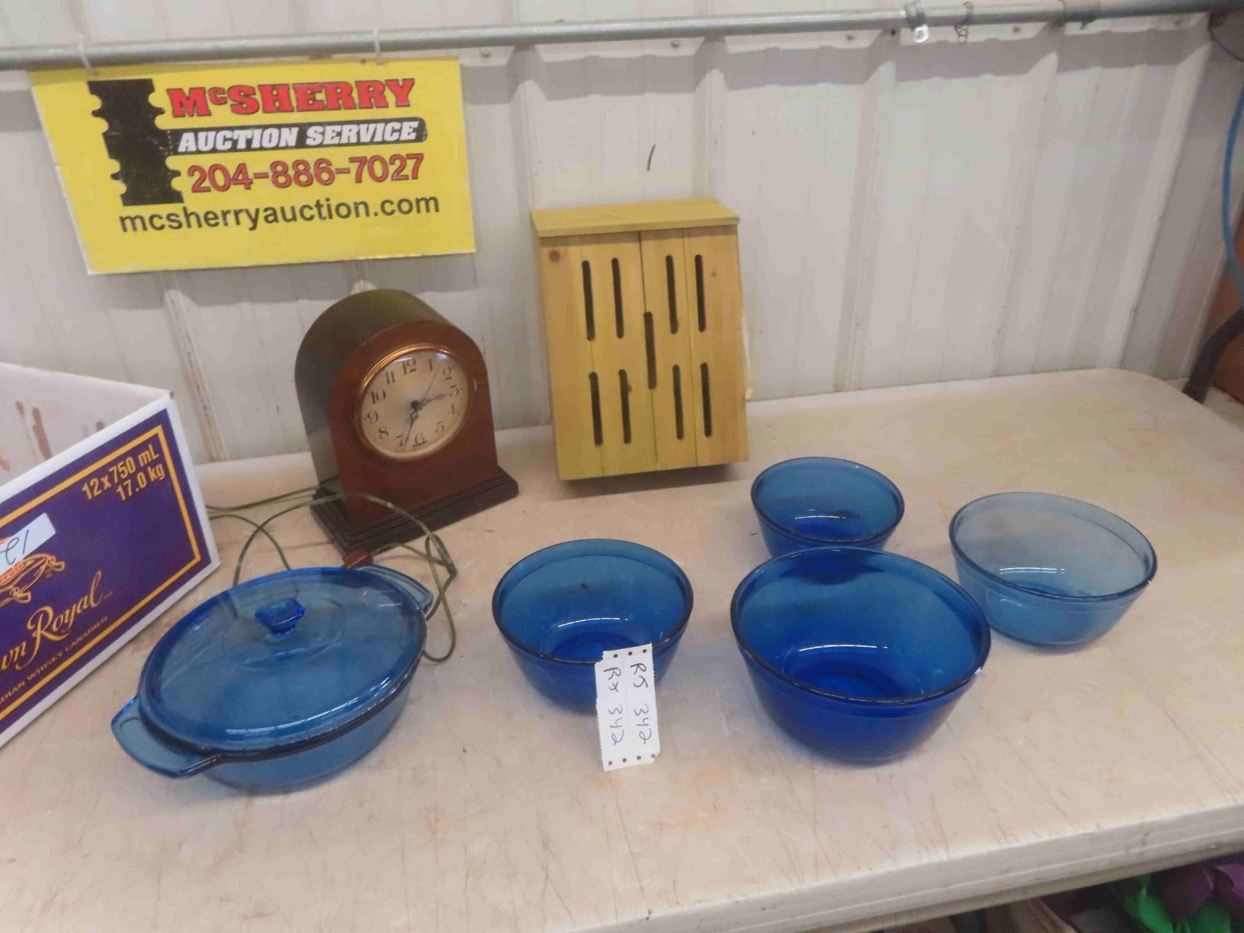 Cobalt Mixing Bowls , Covered Casserole Dish, Mantle Clock, Butterfly