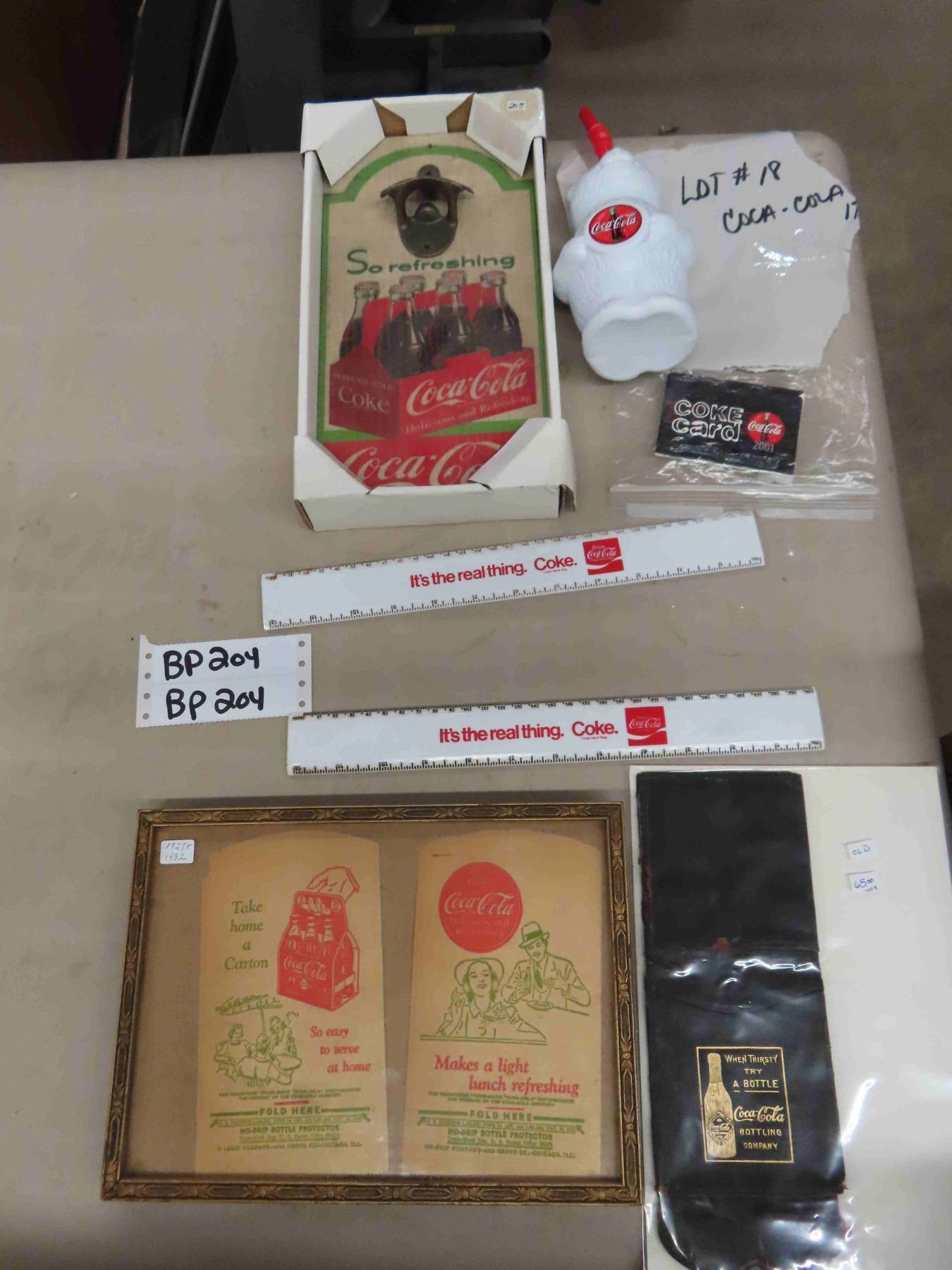 Coca-Cola Collectibles ; Leather Wallet- Very Early, Paper Bottle Holders, Coke Rulers, Bottle Opener, plus more