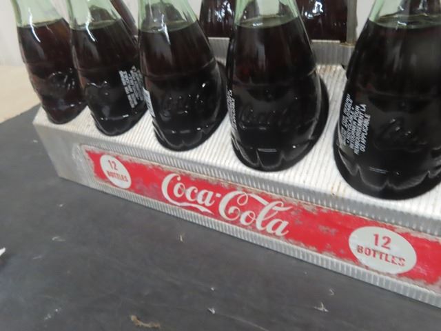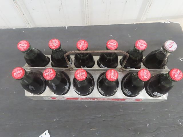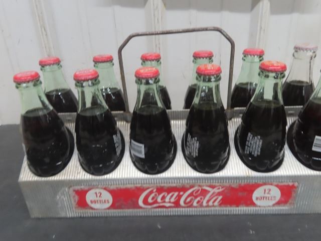 Coca-Cola Metal 12 Pack Carrier with (12) Coke Bottles