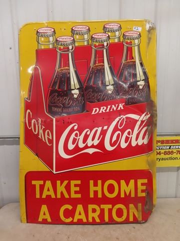 Coca-Cola Metal 6 Pack Sign 35 x 51  - small cut right across bottom