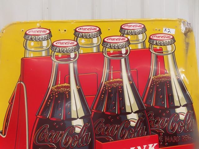 Coca-Cola Metal 6 Pack Sign 35"x 51" - small cut right across bottom