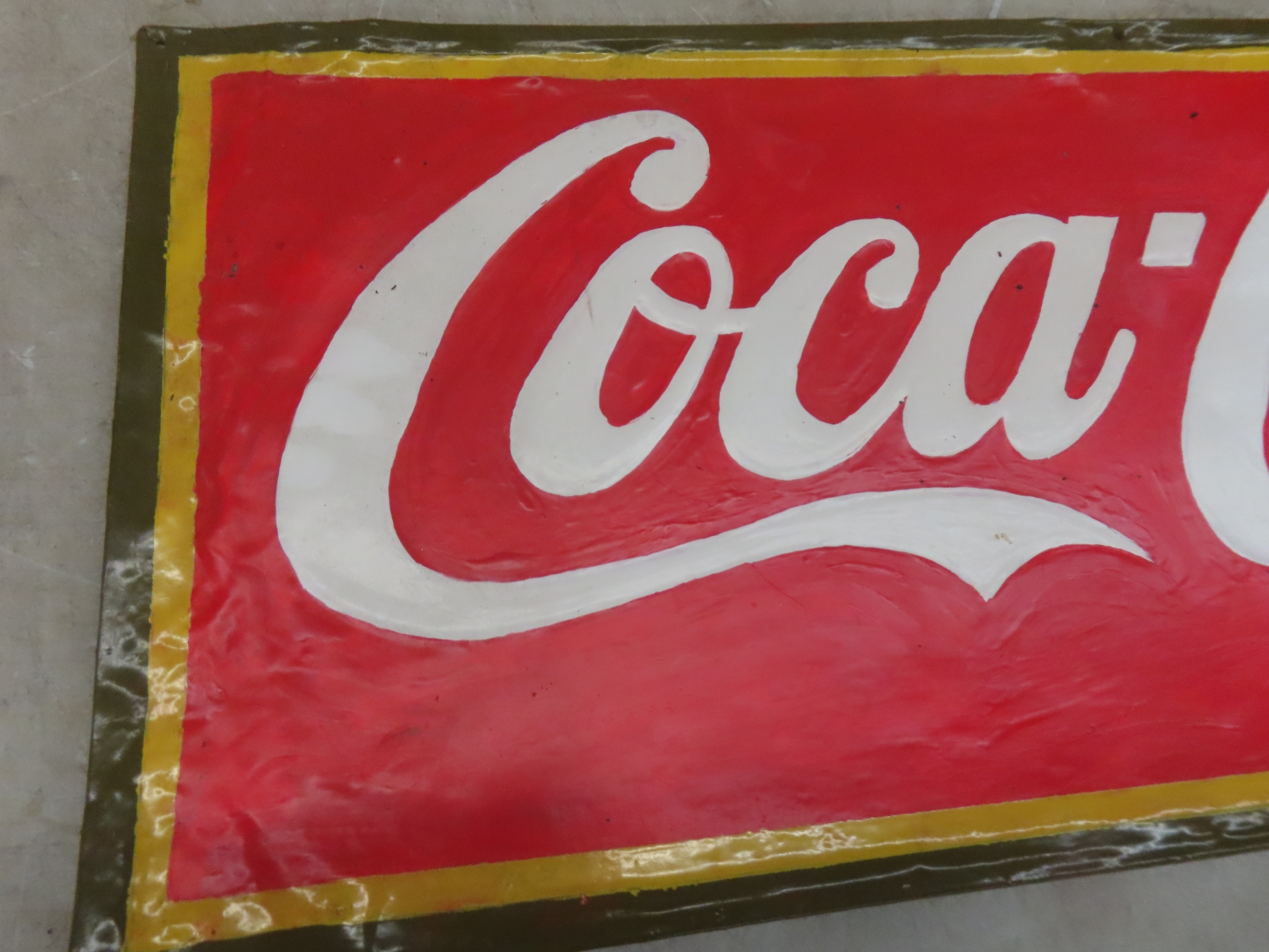 Coca-Cola Metal Embossed Sign, Older, Touched Up/Repainted 12" x 29"
