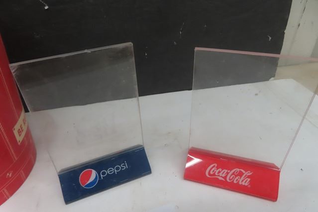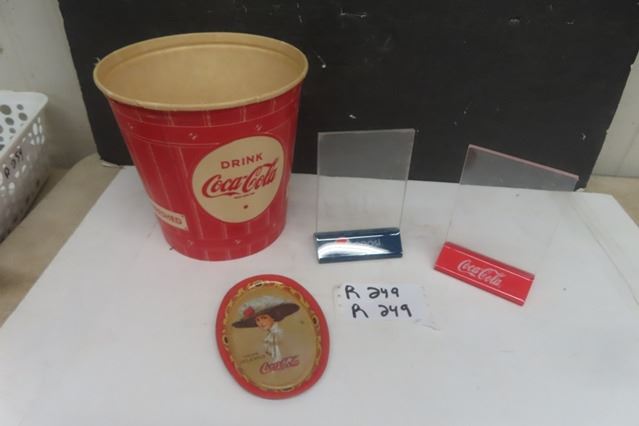 Coca-Cola Popcorn Bucket, Modern Coke Tip Tray & 2 Table Top Menu Displays