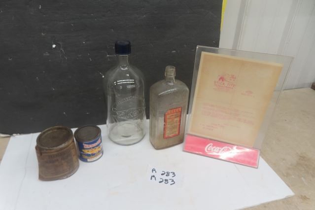 Coca-Cola Table Menu, Baker Chemical Bottle, Gold Ex HBL Cream Separator Oil Bottle, Timber Lox Marine Paint, Pearless Wagon Paint